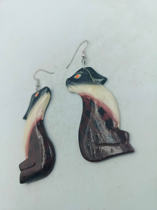 Handgeschnitzte Ohrhänger in Tierform mit ausdrucksstarker Farbgebung