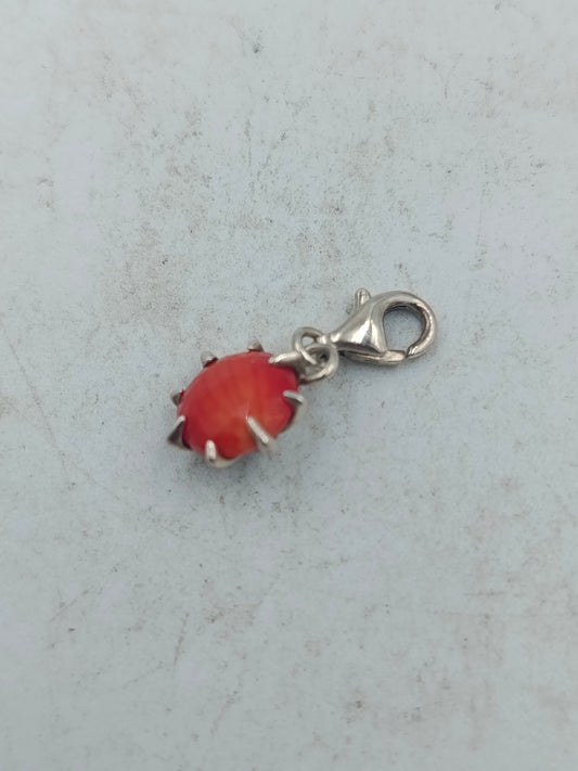 Silber Charm Anhänger mit rotem Stein und sicherem Karabinerverschluss