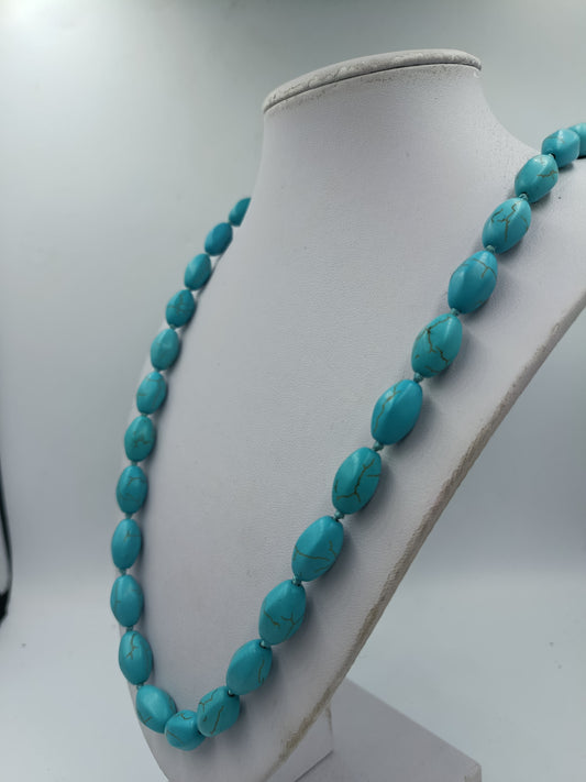 Türkise Halskette mit ovalen Schmucksteinen in kräftigem Blauton