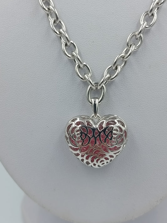 Silberfarbene Halskette mit Herzanhänger und dekorativer Gliederkette für einen eleganten Auftritt