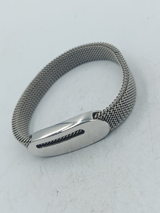 Silberfarbenes elastisches Armband mit feiner Metallstruktur und glattem Mittelstück