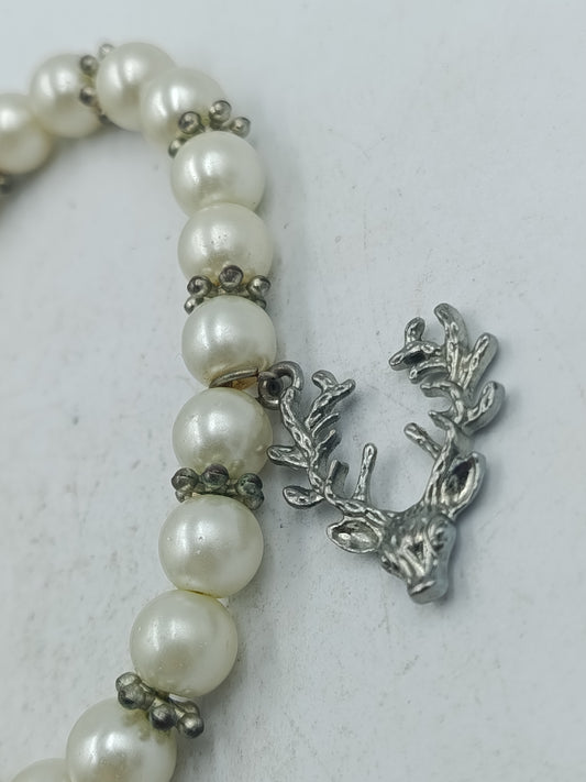 Elastisches Perlenarmband in Creme mit dekorativem Hirschanhänger in silberfarbener Optik