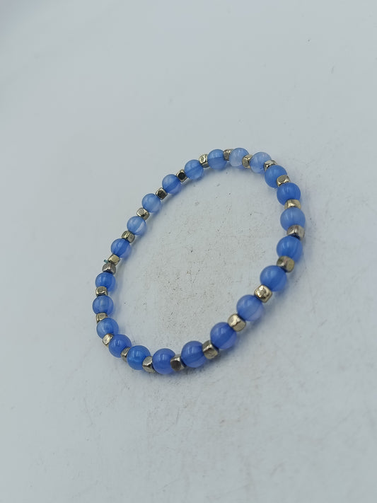 Elastisches Armband mit blauen Perlen und silberfarbener Optik für einen frischen klaren Stil