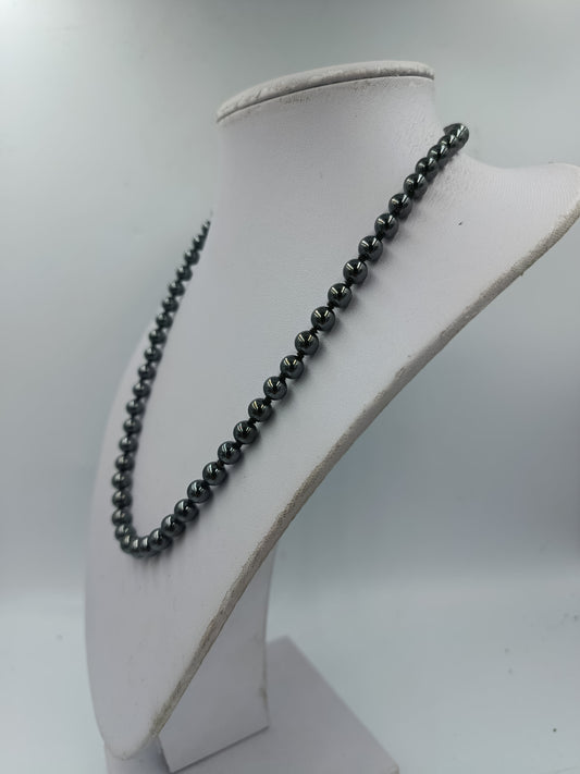 Perlenkette mit glänzenden dunklen Kugeln und hochwertigem Silberverschluss
