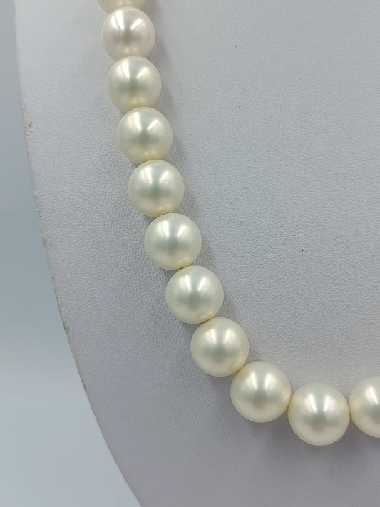 Helle Natur Perlenkette mit runden Kugeln in warmem Creme Ton