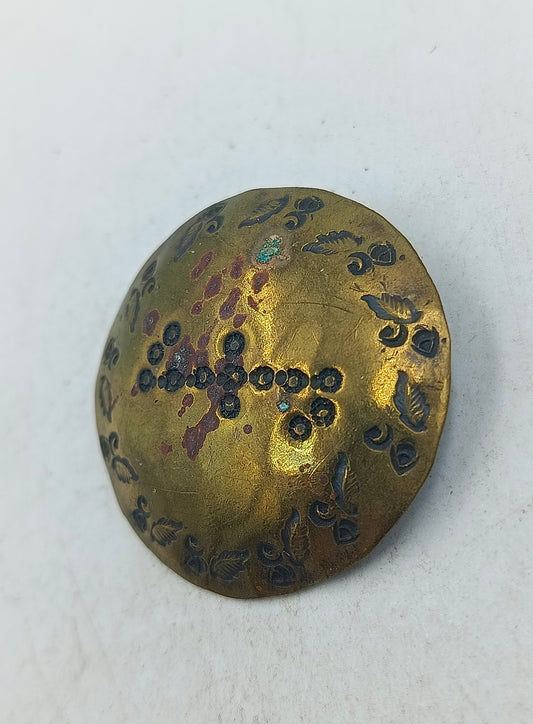 Antike Brosche aus Messing mit floralem Muster im klassischen Vintage Stil
