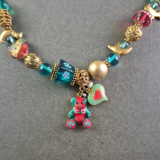 Verspielte Statement Halskette – Bunte Anhänger & Glasperlen-Mix