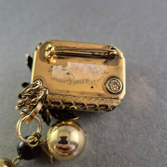 Vintage Brosche „Made in Germany“ – Goldfarbene Blätter mit Anhänger