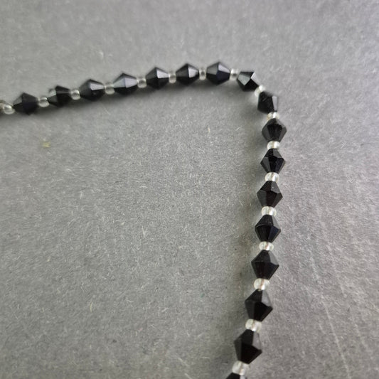 Schwarze Glasperlen Halskette – Facettiert mit Kristallakzenten