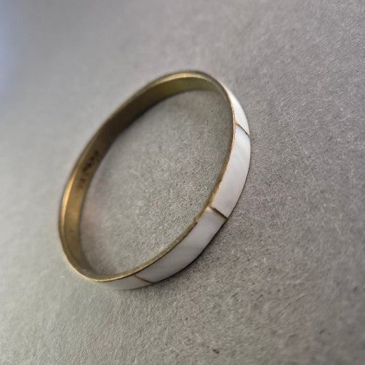 Vintage Armreif mit Perlmutt-Einlage – Eleganz im Messing-Look