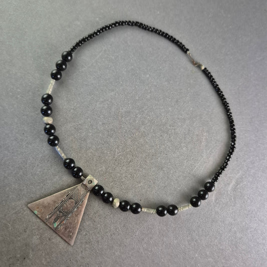 Ethno Kette mit schwarzem Perlenmix und großem Dreieck Anhänger
