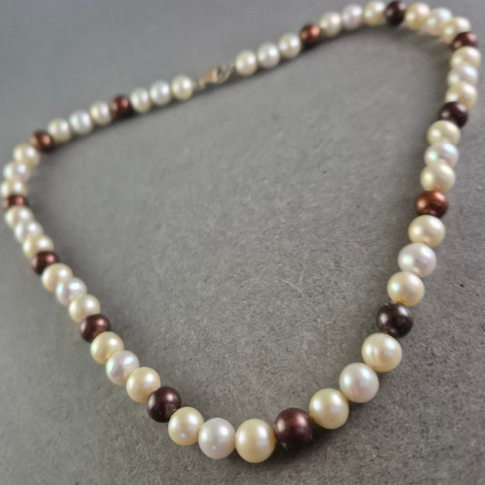 Perlen Kette in Weiß und Braun – Klassisch und stilvoll