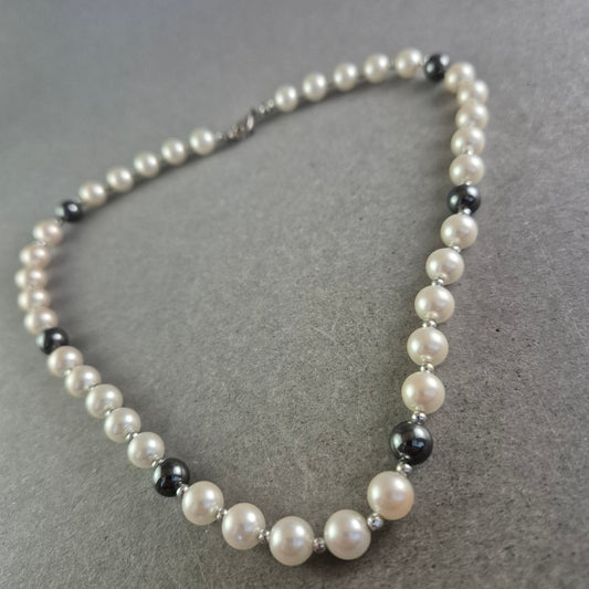 Perlen Halskette in Weiß & Anthrazit – Klassik trifft Kontrast