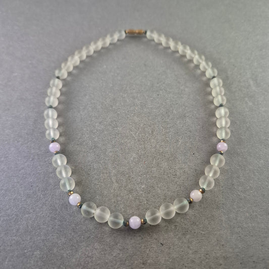 Halskette mit mattierten Glasperlen und Lavendelakzenten