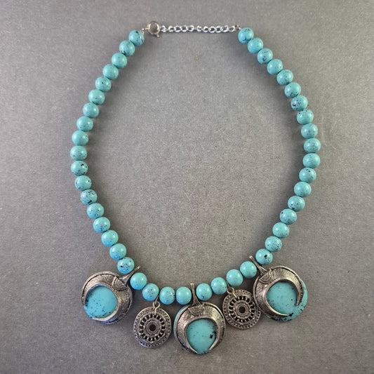 Boho Halskette mit Türkis und silberfarbenen Anhängern