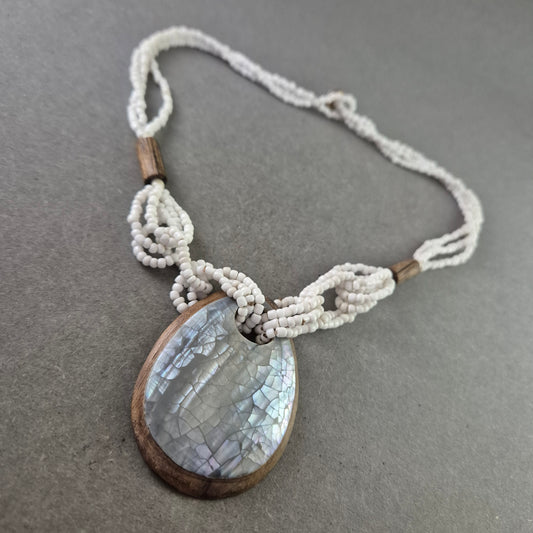 Damen Halskette mit Muschel-Anhänger und Perlen