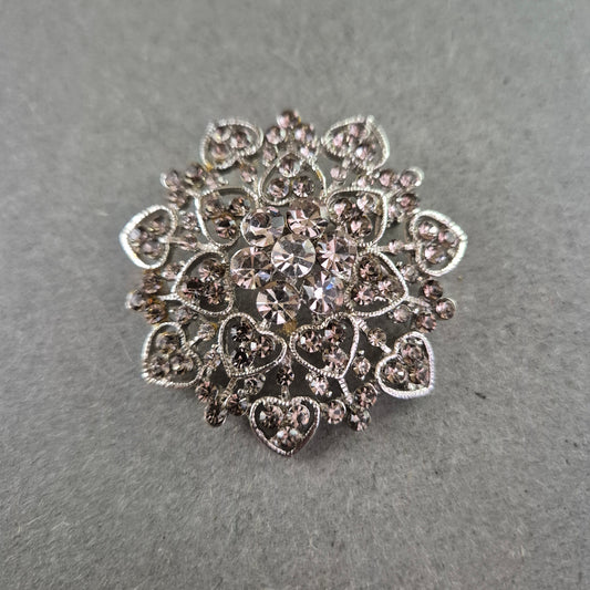 Romantische Strassbrosche mit Herzornament – Silberfarbener Vintage-Look