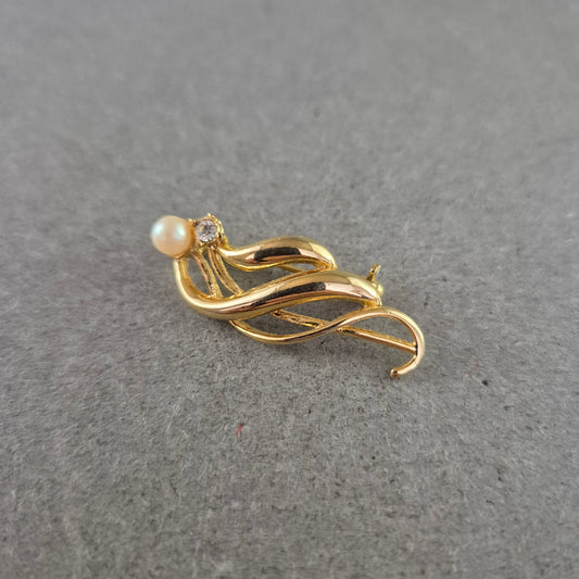 Elegante Brosche mit Perle und Strassstein – Zeitlos in Goldoptik
