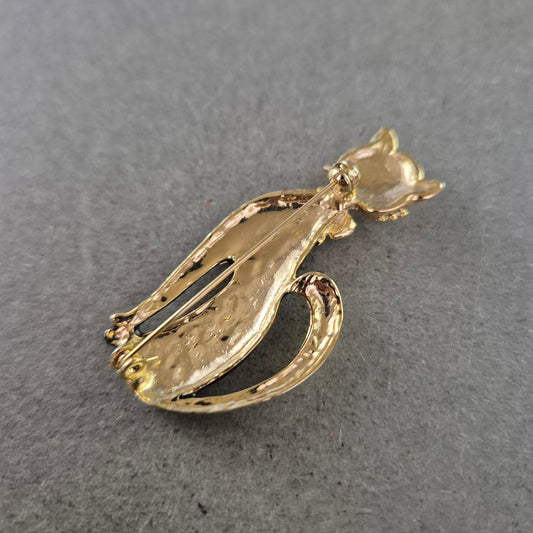 Verspielte Katzen-Brosche mit schwarzer Emaille – Stilvoll & charmant