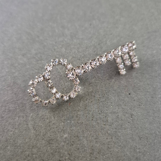Strassbesetzte Schlüssel-Brosche – Glänzender Vintage-Chic
