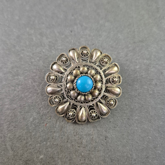 Silberbrosche mit Türkisstein – Traditionelles Design im Ethnostil