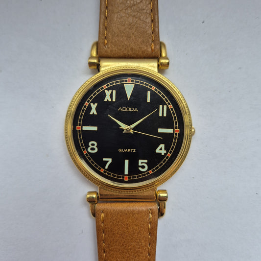 Vintage Adora Herrenarmbanduhr – Klassisches Design mit braunem Lederarmband