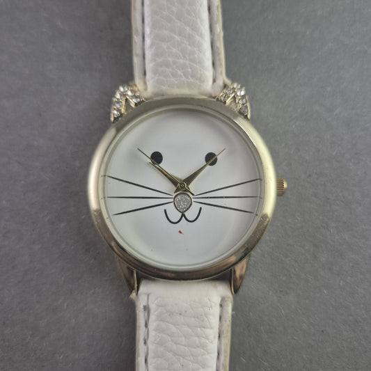 Verspielte Damenarmbanduhr – Katzenmotiv mit Strass-Details
