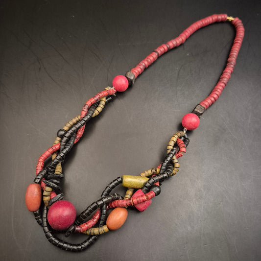 Bunte Statement-Halskette aus Holzperlen - Einzigartiger Vintage-Stil
