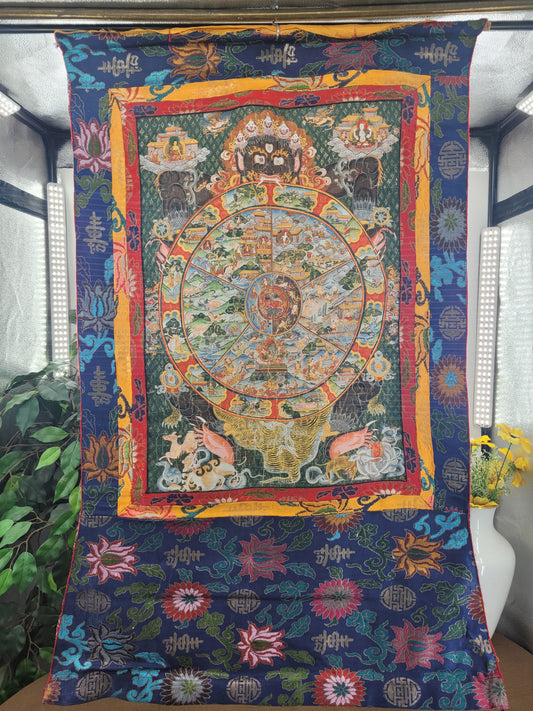 Tibetanisches Thangka Vorhang Teppich Gemälde Rad des Lebens