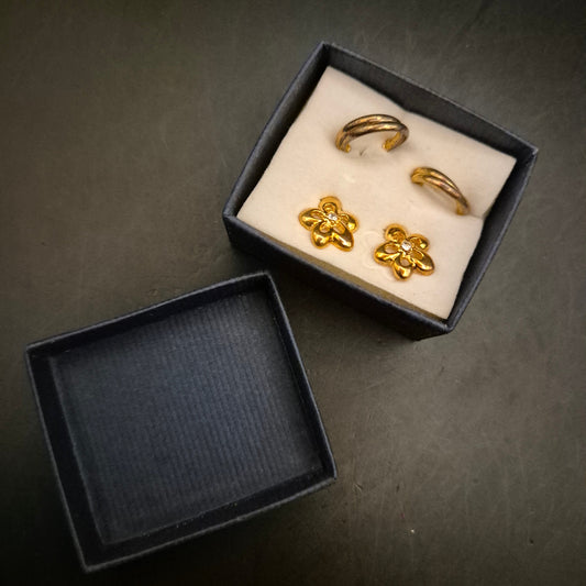Charmantes Vintage Ohrring-Set: Goldfarbene Creolen & Blütenstecker