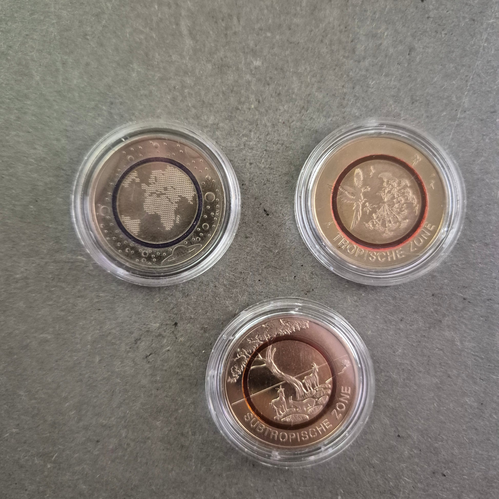 3x 5-Euro-Gedenkmünzen – Tropische Zonen & Planet Erde mit Polymer-Ring