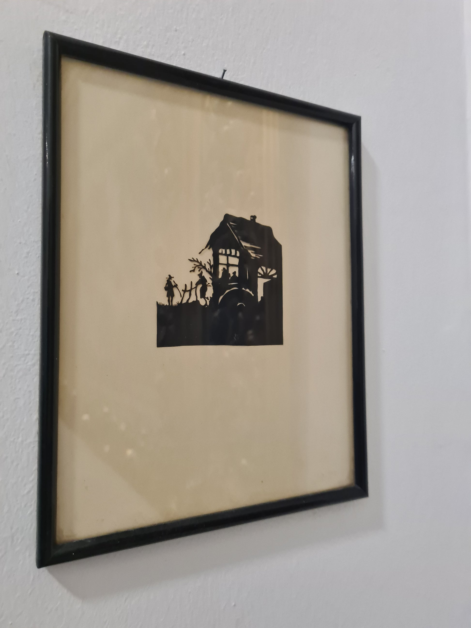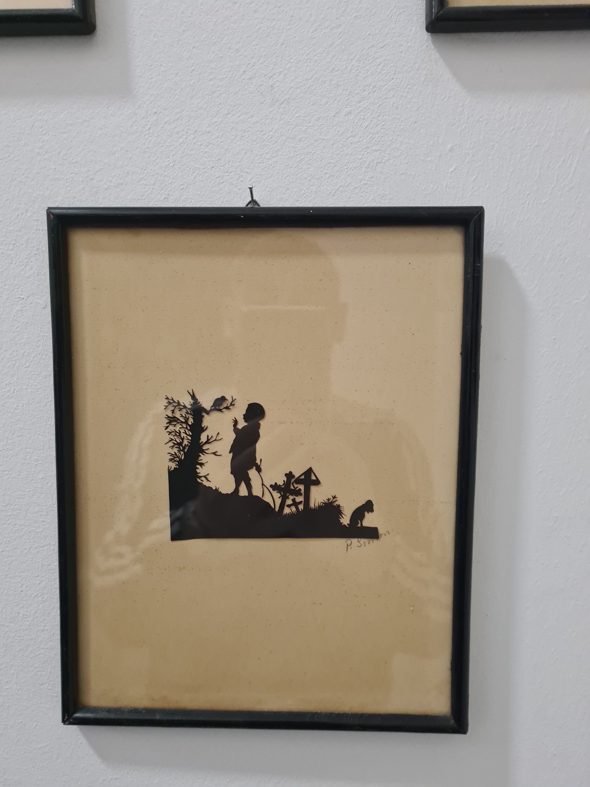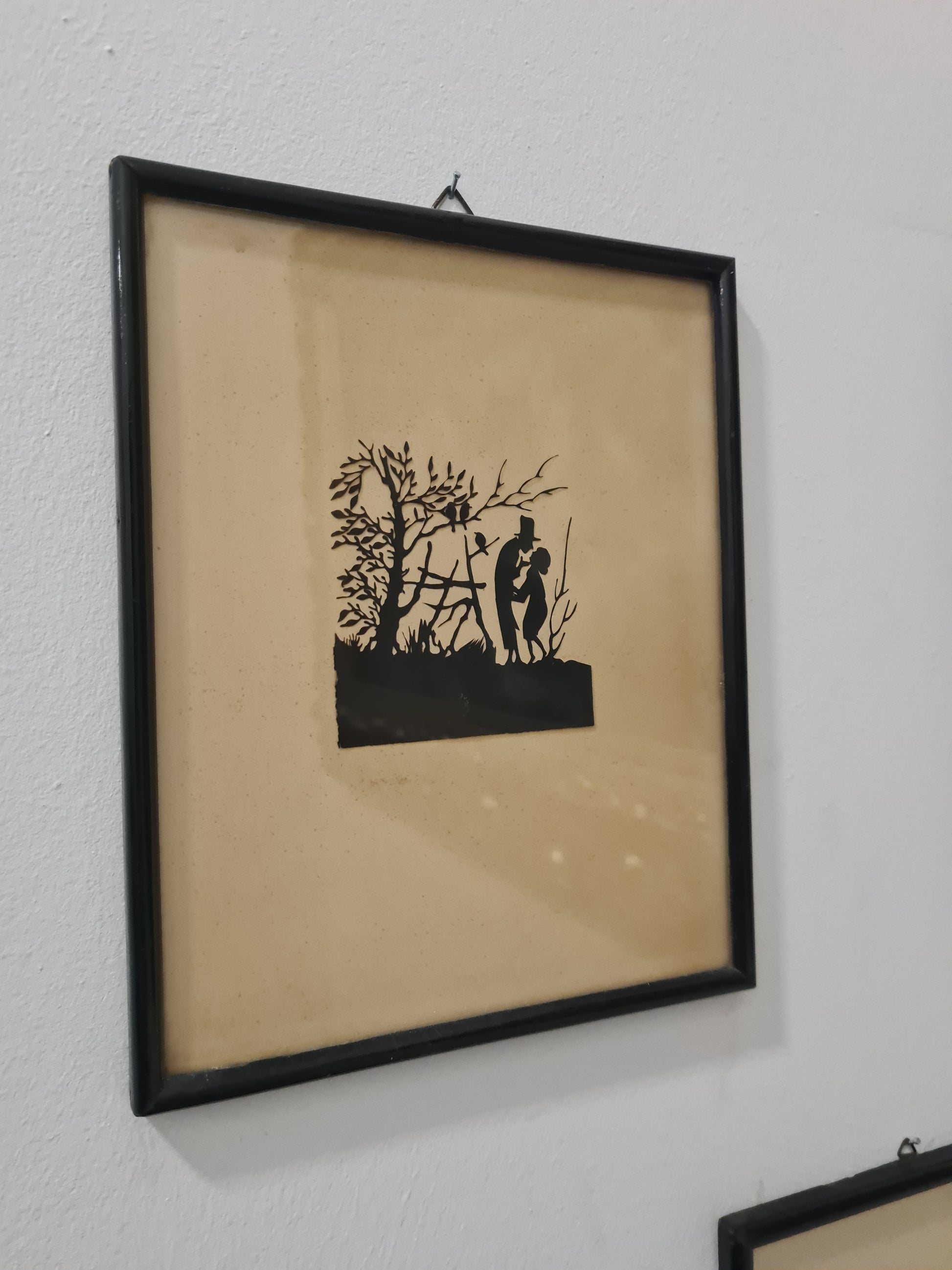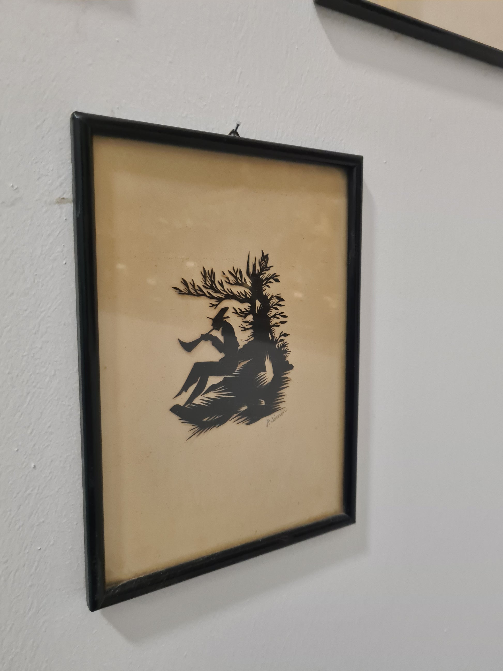 5 Stück Art Deco Scherenschnitt im Holzrahmen 22x18cm