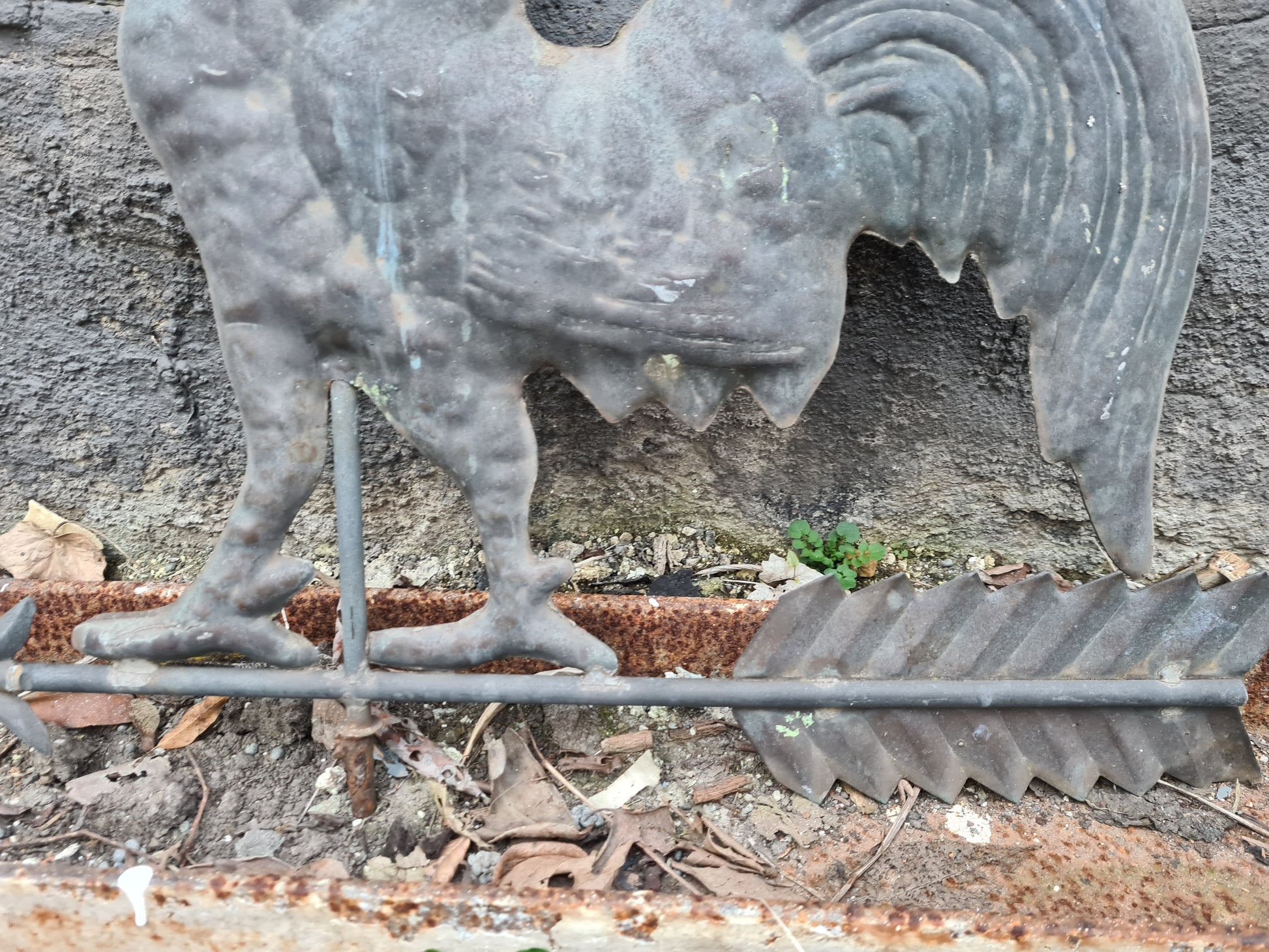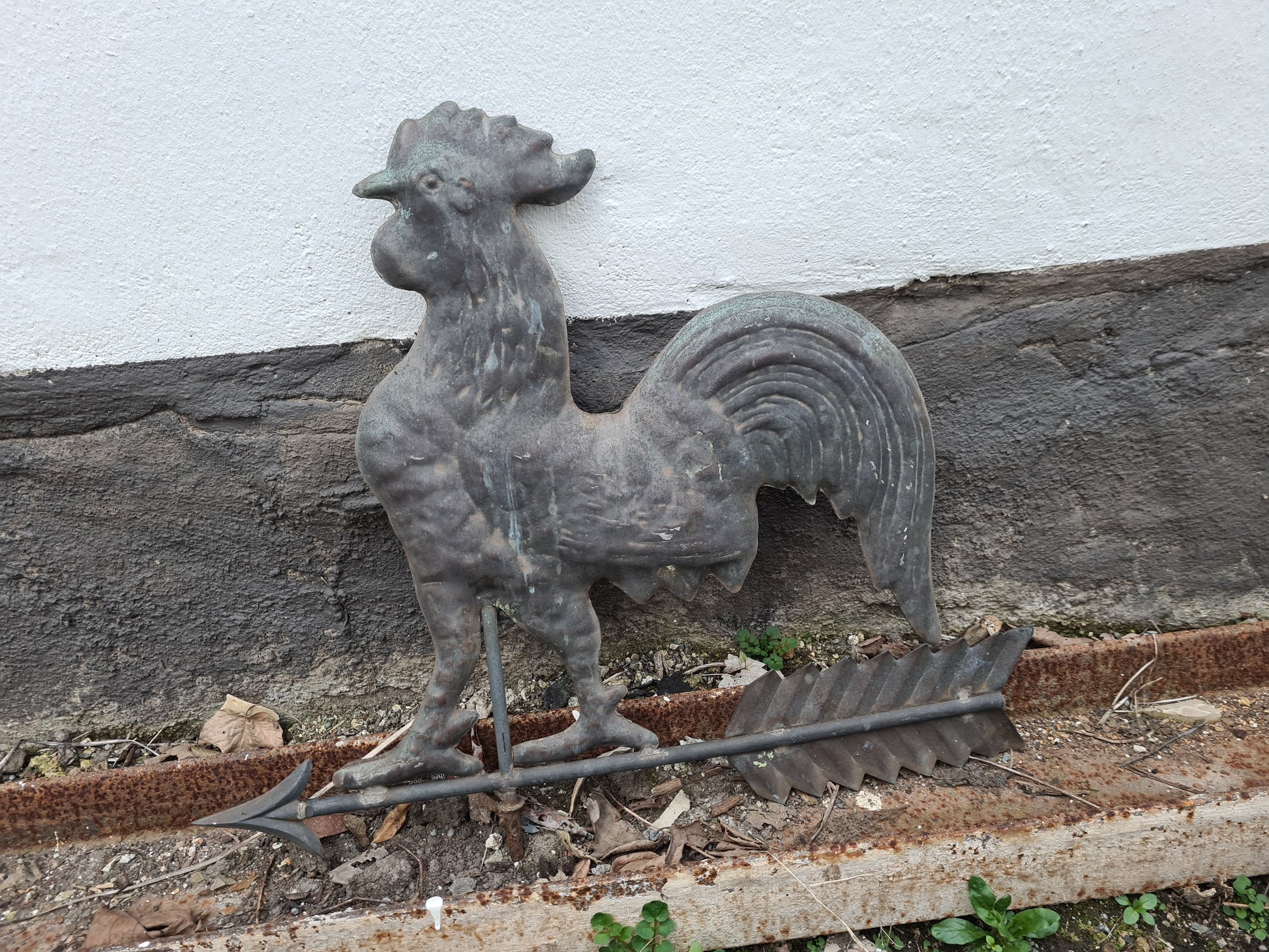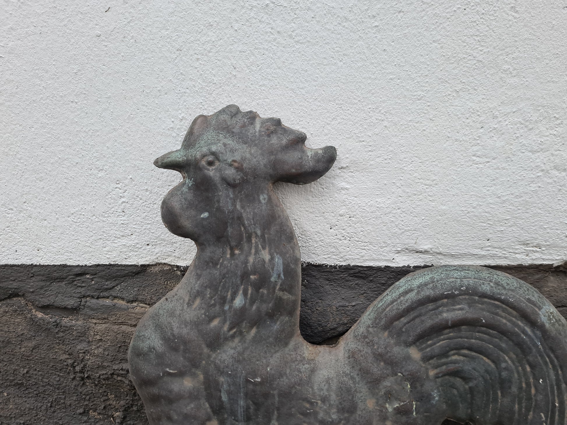 angeboten wird ein alter Wetterhahn aus Kupfer – eine dekorative Gartenfigur mit historischem Charme.