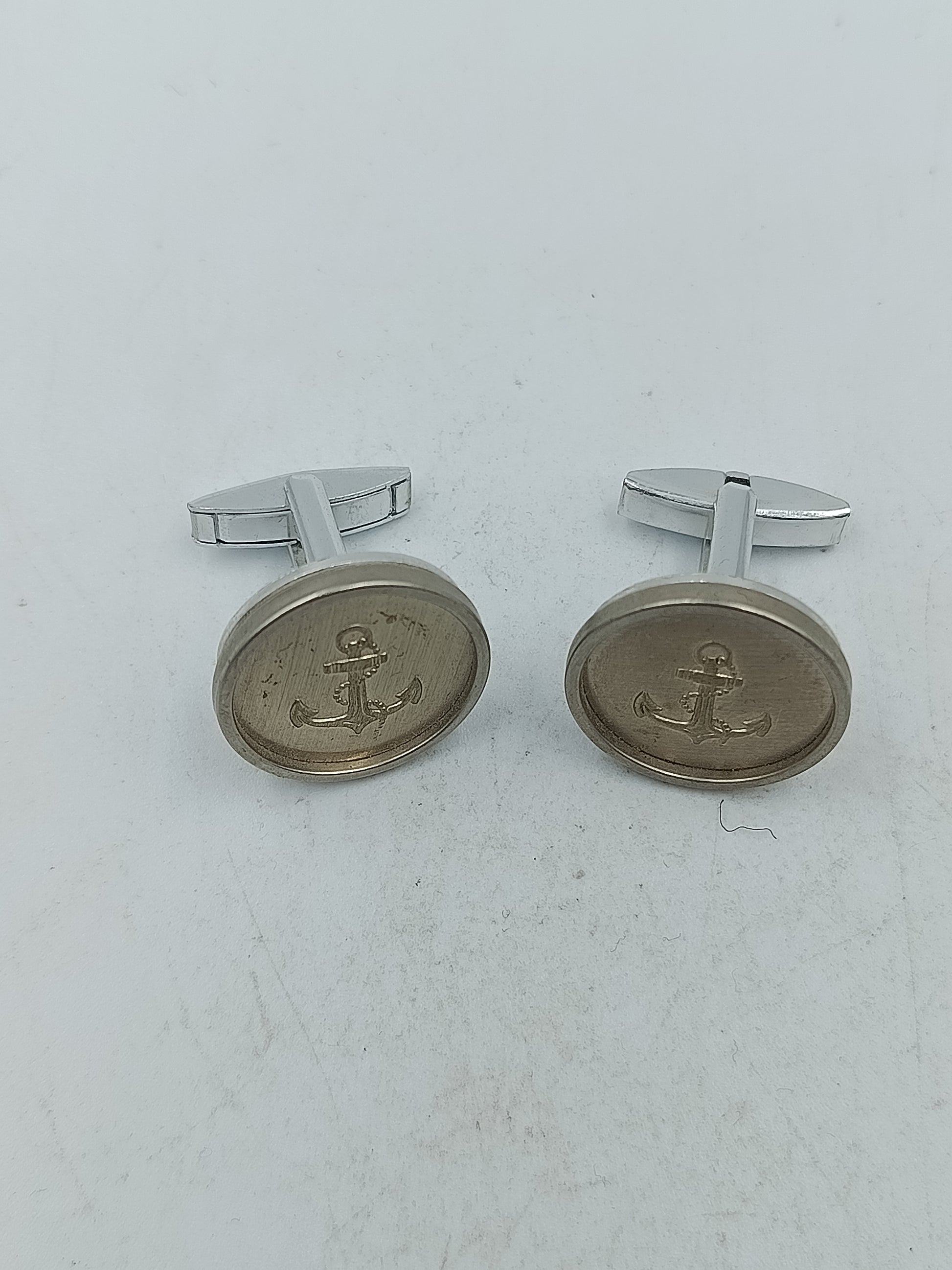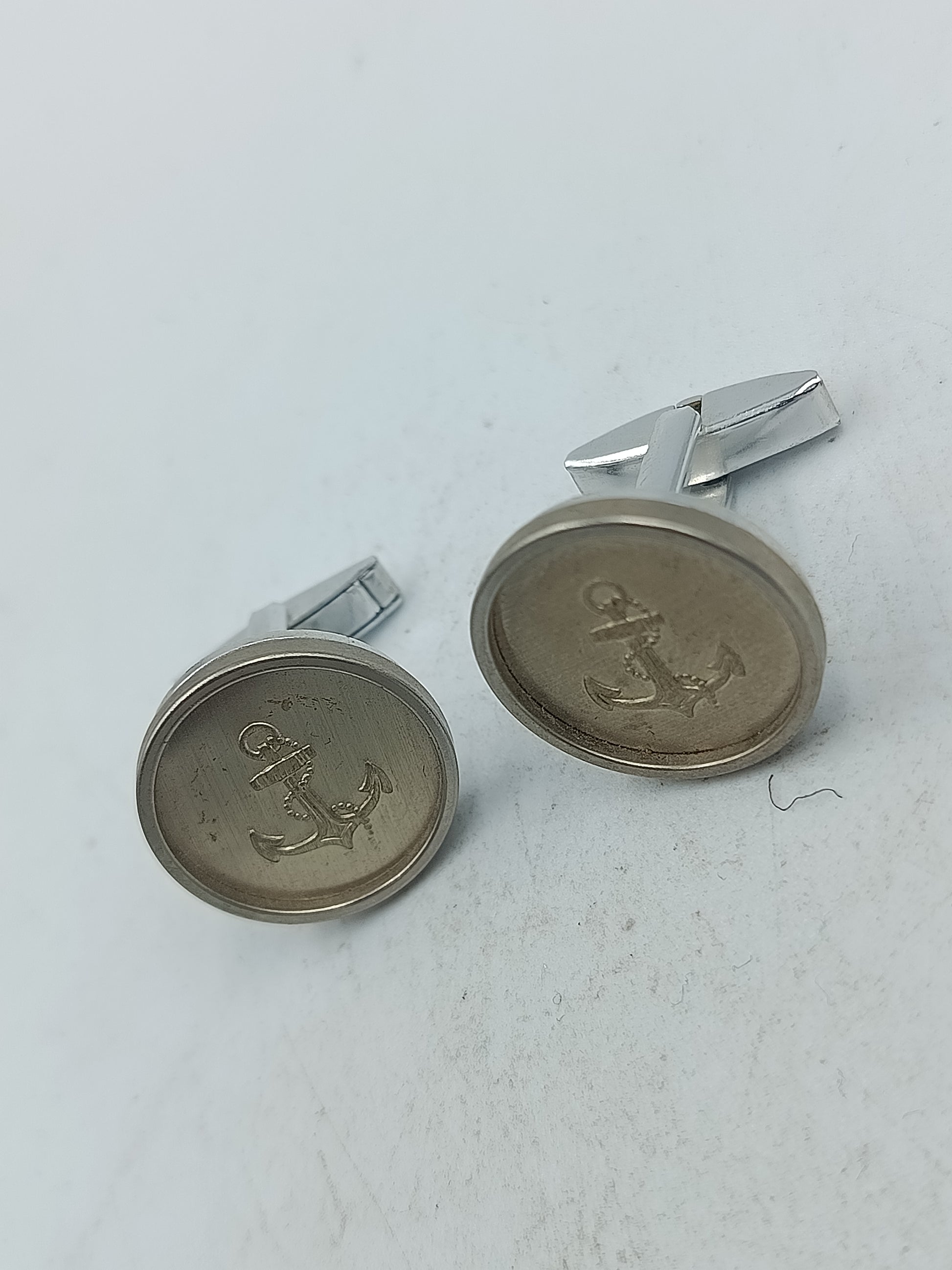 Diese stilvollen Manschettenknöpfe zeigen einen fein gravierten Anker auf runder Fläche in silberfarbener Optik. Das maritime Design wirkt zeitlos und maskulin und passt perfekt zu eleganten Hemden sowie festlichen Anlässen. Die stabile Verarbeitung sorgt für sicheren Halt und angenehmen Tragekomfort über den ganzen Tag hinweg