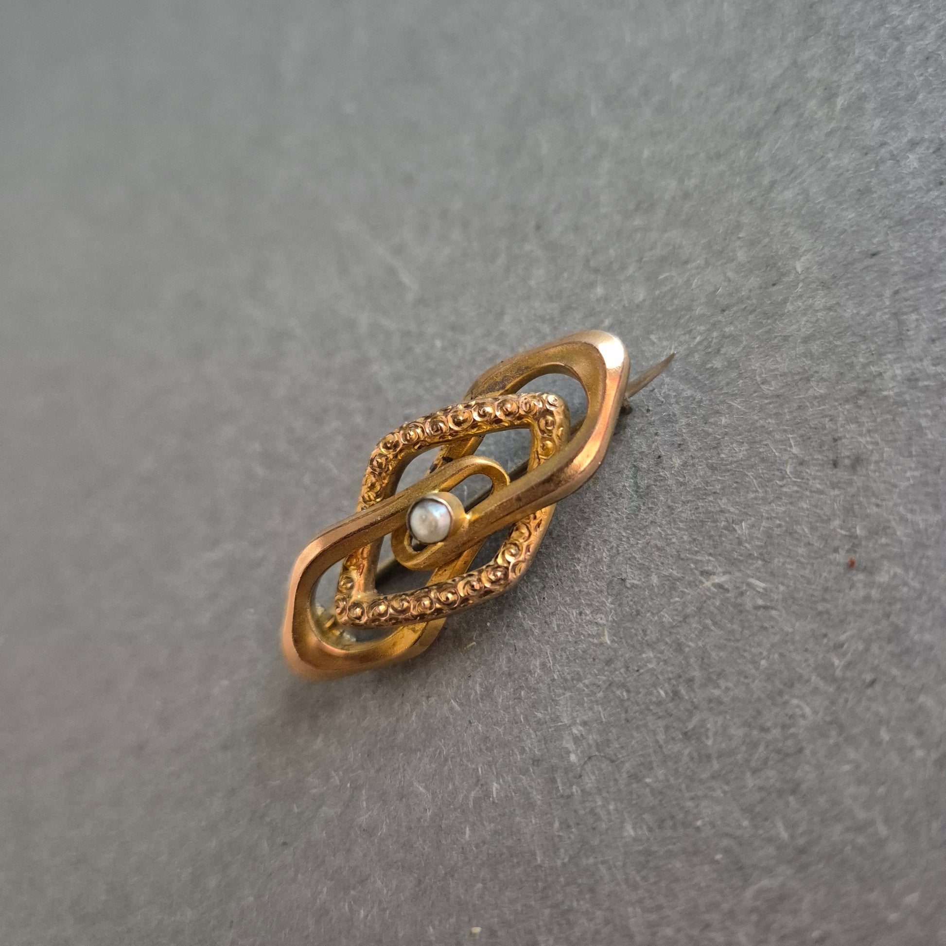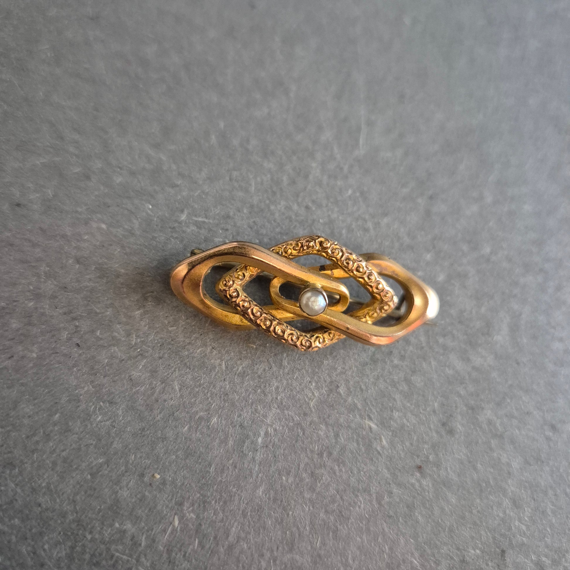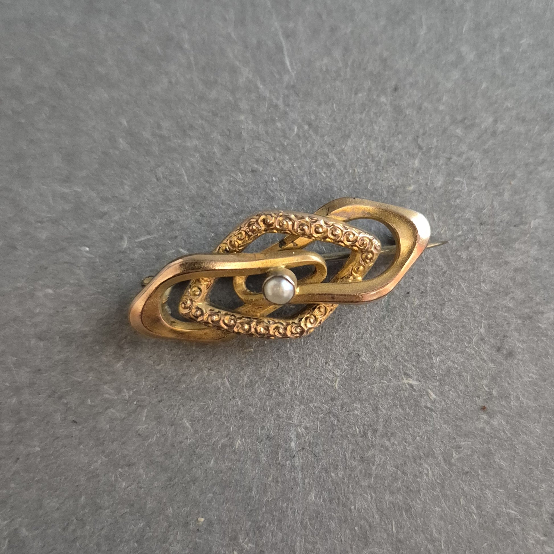 Antike Brosche in Goldoptik mit Perle – Florales Design der Jahrhundertwende