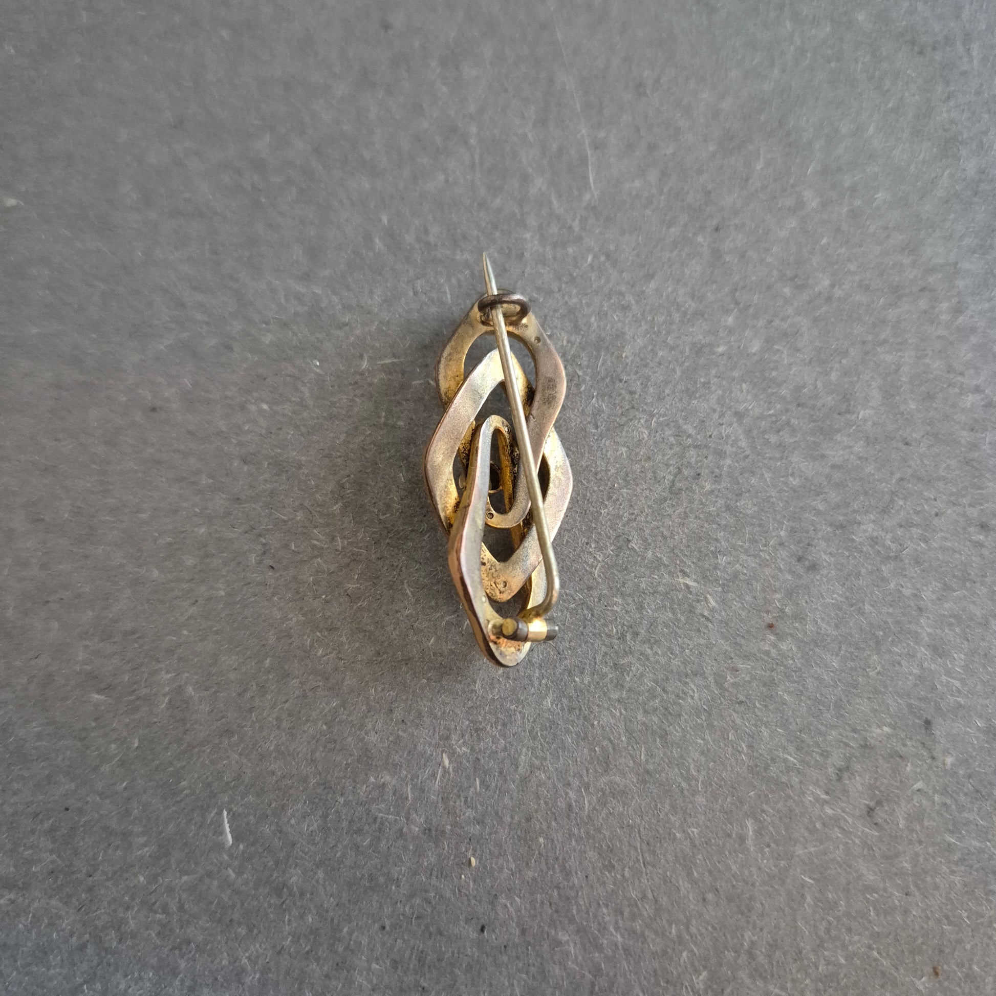Diese elegante antike Brosche besticht durch ihre kunstvoll geschwungene Form, feine Ornamente und eine zentrale Zierperle. Das Design erinnert an den Jugendstil und macht dieses Stück zu einem besonderen Accessoire mit nostalgischem Charme. Ideal für Sammler oder Liebhaber klassischer Schmuckstücke.