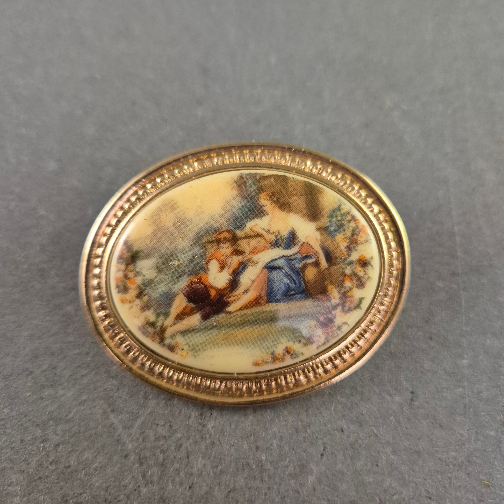 Antike Brosche mit romantischem Gemälde – Ovales Medaillon im Vintage-Stil