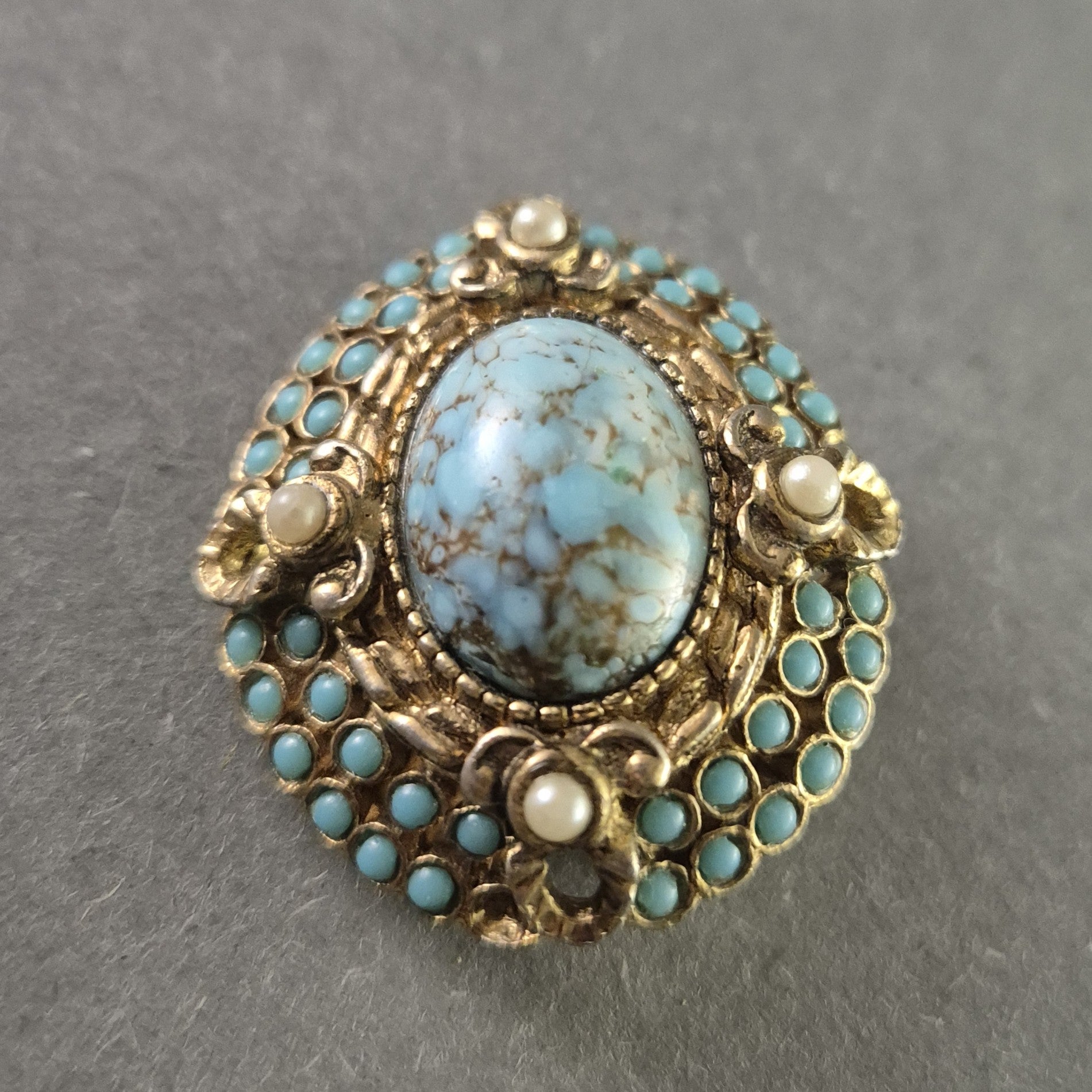 Antike Brosche mit Türkis und Perlen – Elegantes historisches Design