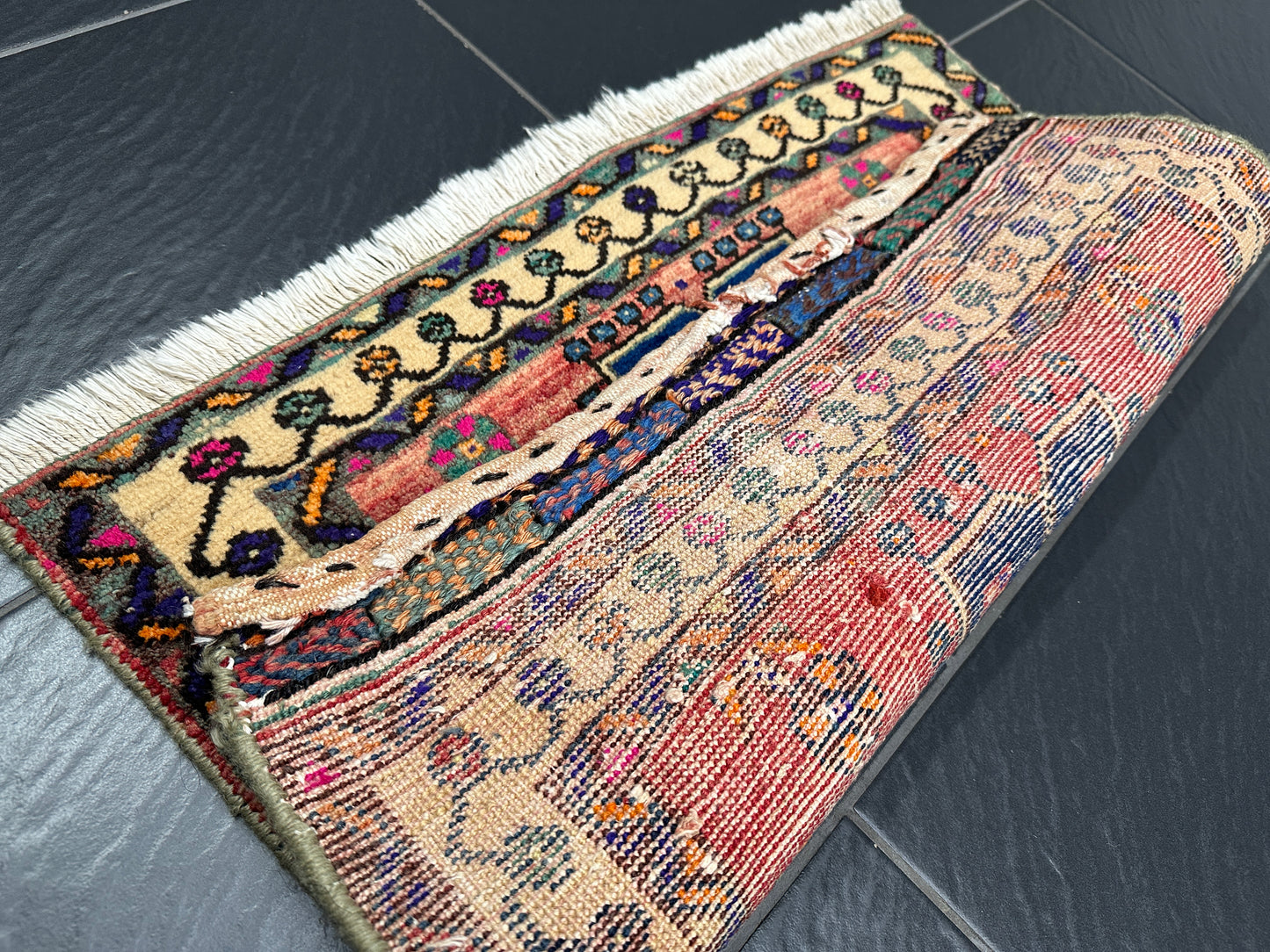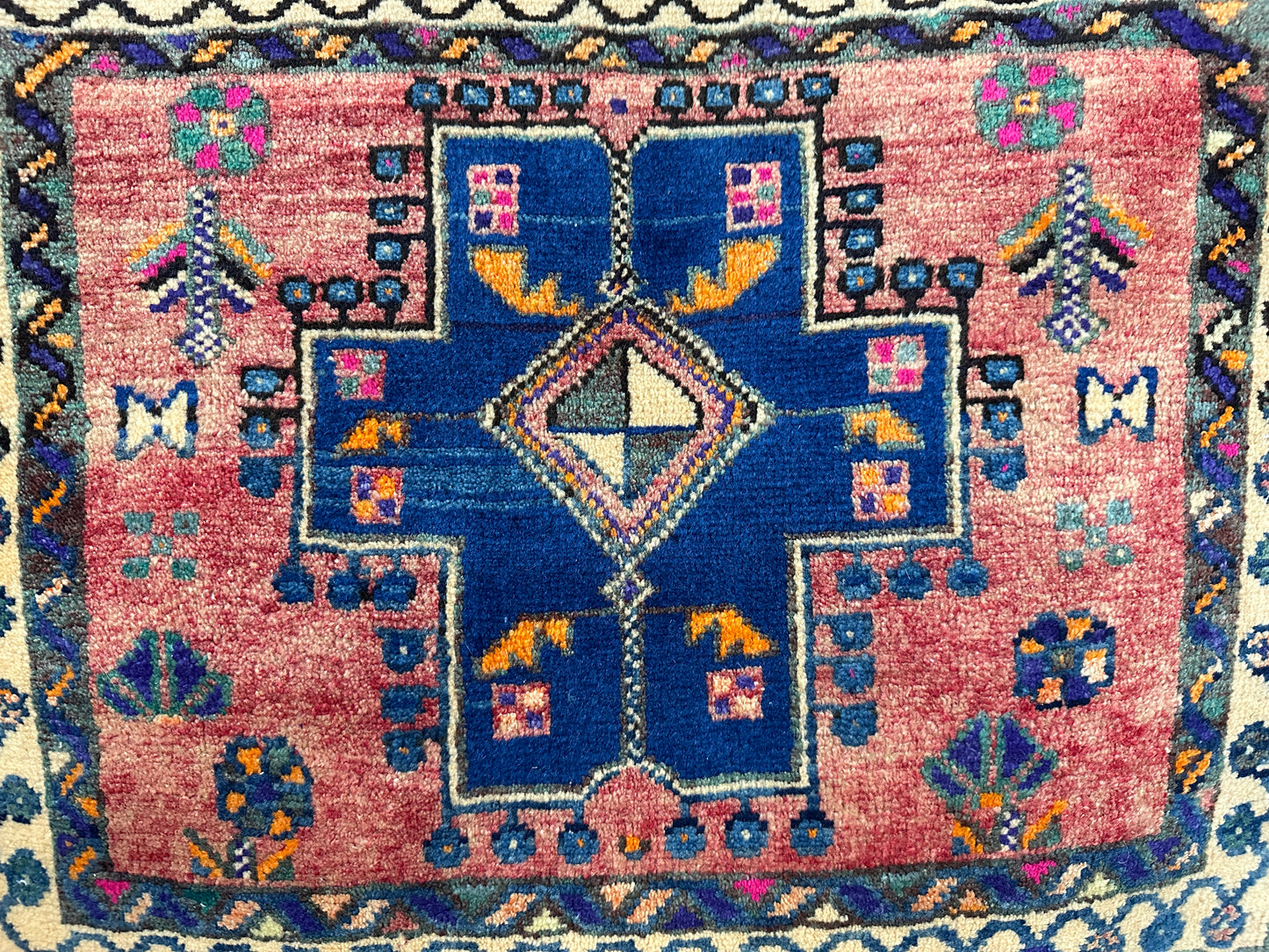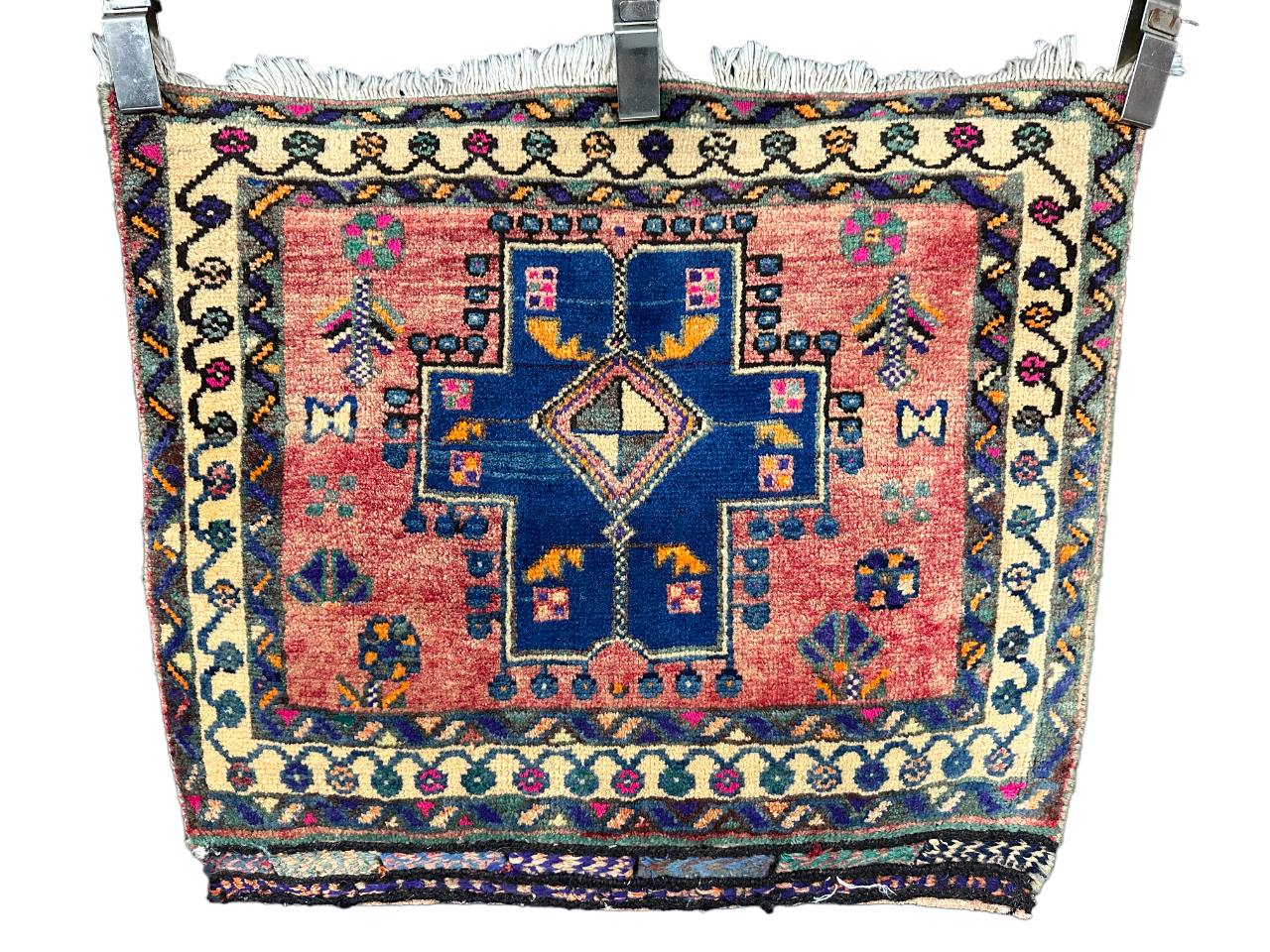 • Antike Gaschgai Shiraz Tasche: Ein kunstvoll gefertigtes Accessoire, das die Schönheit eines handgeknüpften Perser Orientteppichs in Ihr Zuhause bringt.
