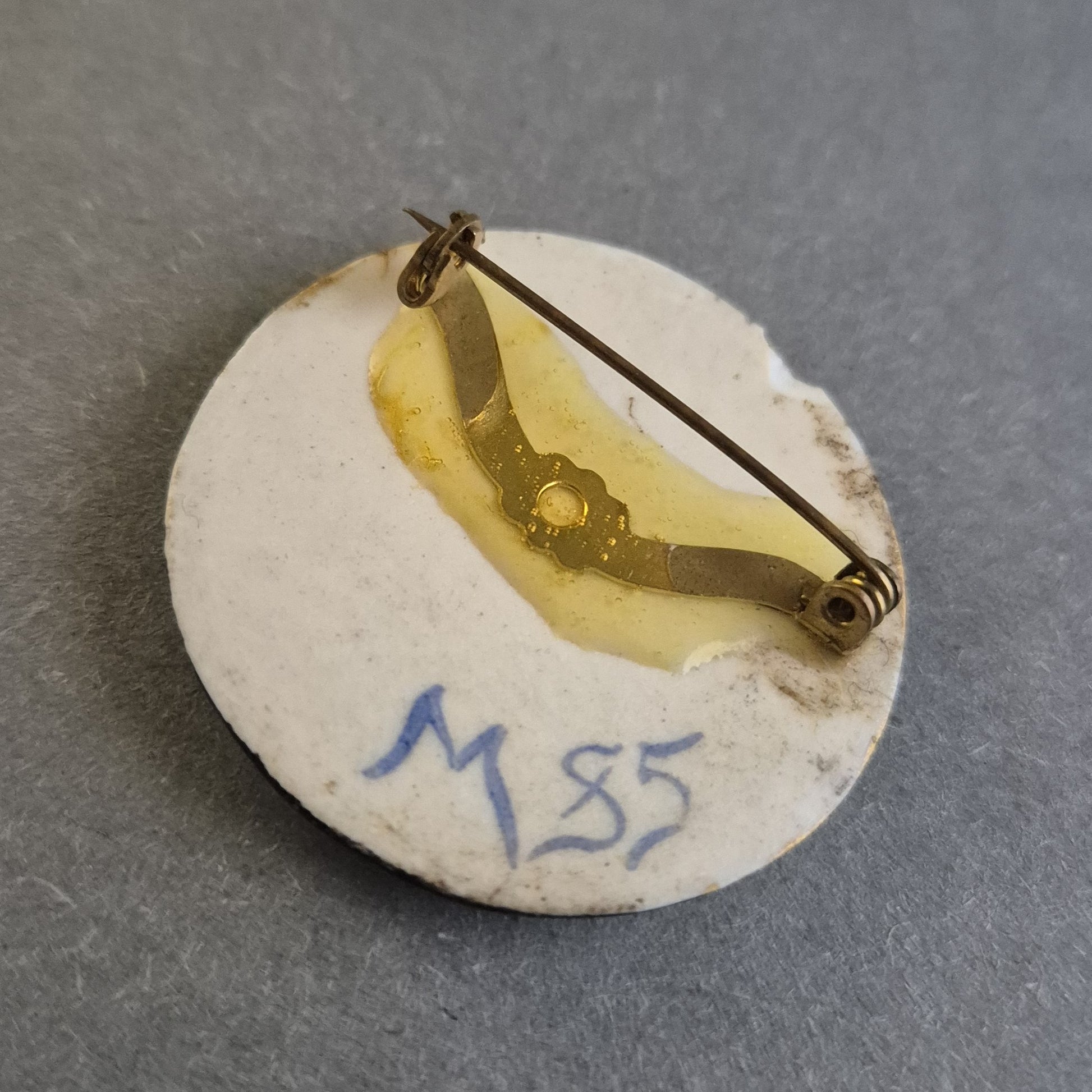 Antike handbemalte Porzellan-Brosche – Kunstvolles Baum-Motiv