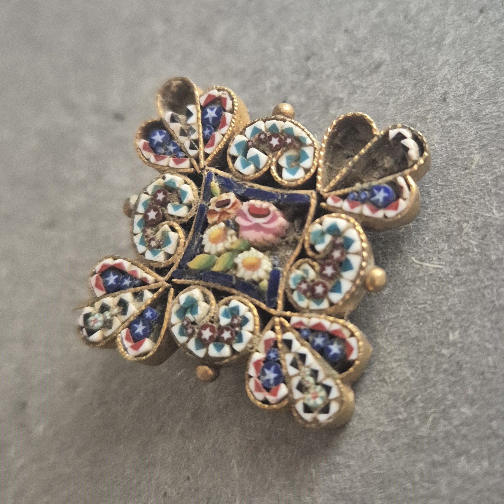 Antike Micro-Mosaik-Brosche mit floralem Motiv – Italienisches Design