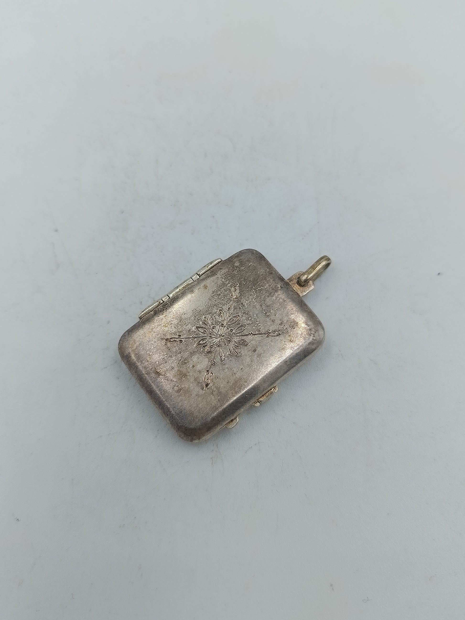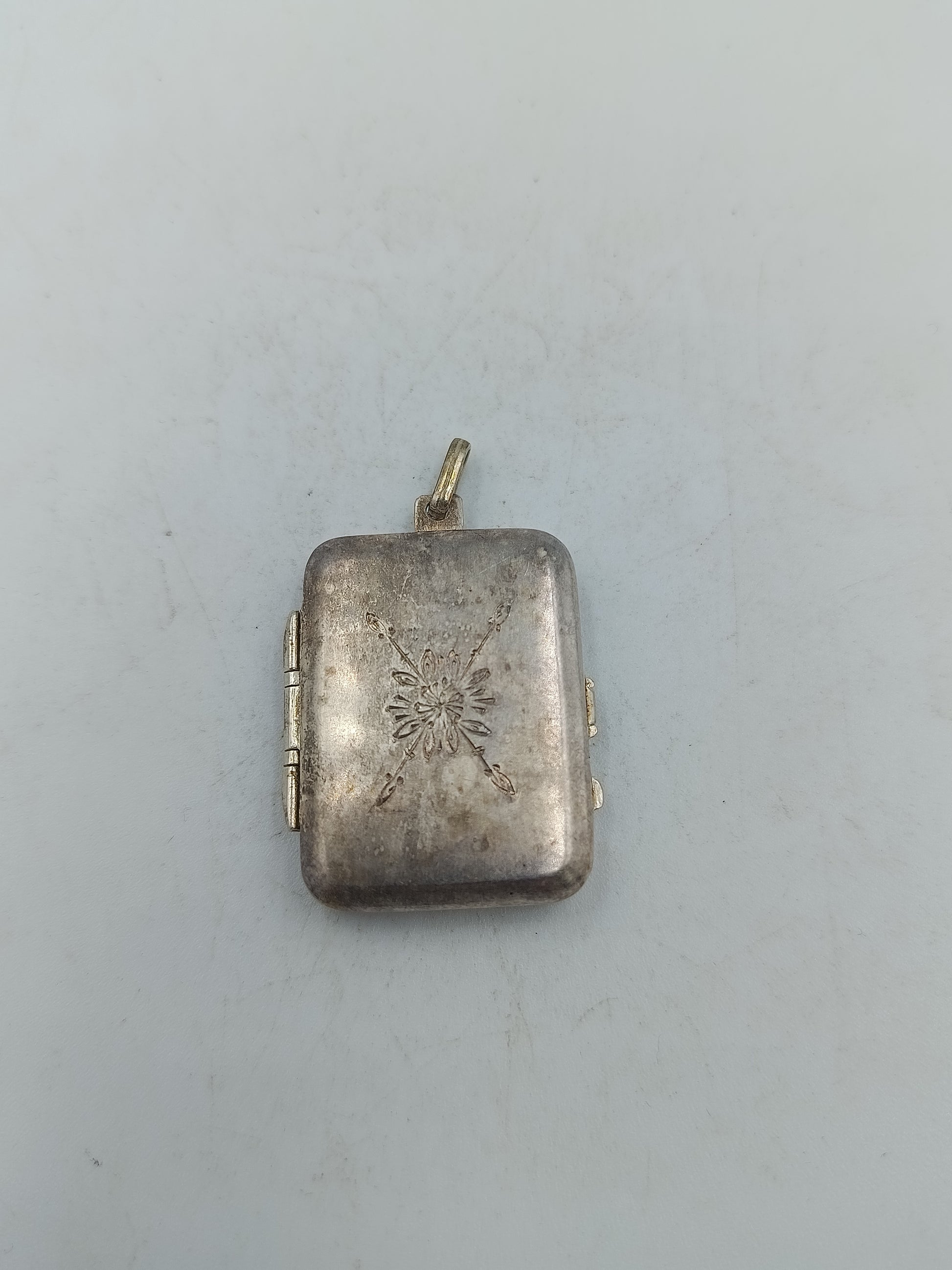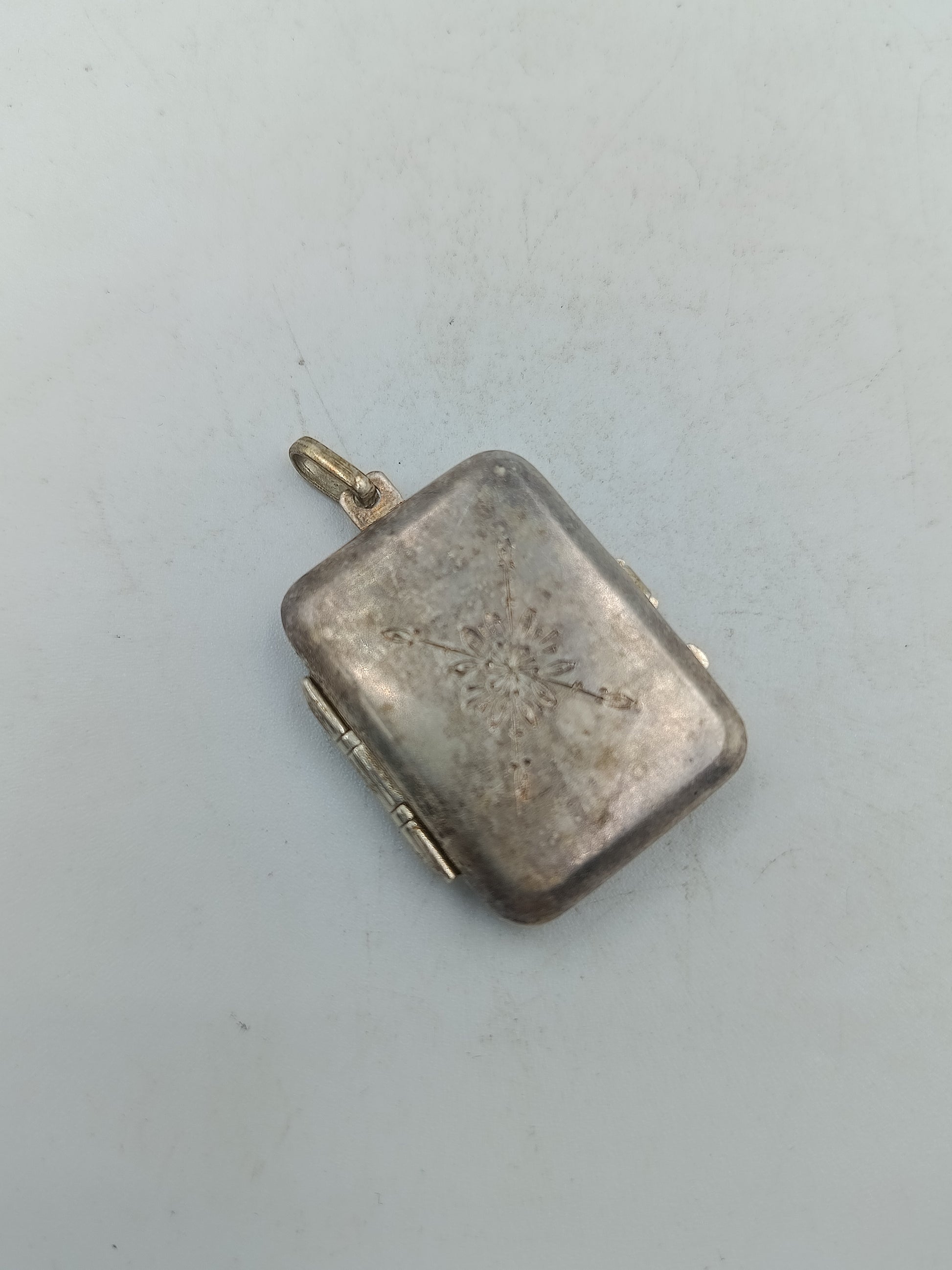 Antikes Medaillon mit Gravur und Klappfach in Silberoptik