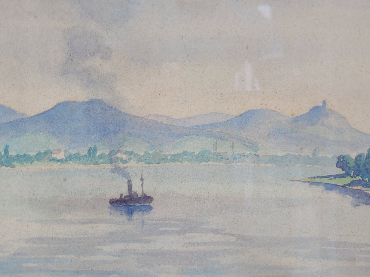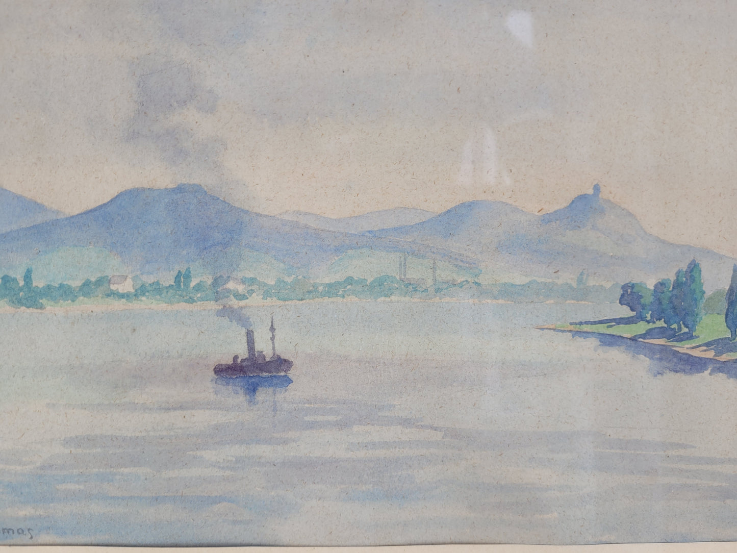 Beschreibung: Diese Aquarellmalerei zeigt eine malerische Landschaft mit Bergen und Wasser, die Ruhe und Schönheit der Natur einfängt. Das Werk ist signiert von Thomas und hochwertig gerahmt, was seine ästhetische Qualität betont. Mit den Maßen 50x30 cm inklusive Rahmen und 30x23 cm ohne Rahmen ist dieses Kunstwerk ein attraktives und beeindruckendes Stück für jede Kunstsammlung oder als dekoratives Element in Wohnräumen. Der sehr gute Zustand des Aquarells garantiert seine Langlebigkeit und seinen dauerhaften Charme