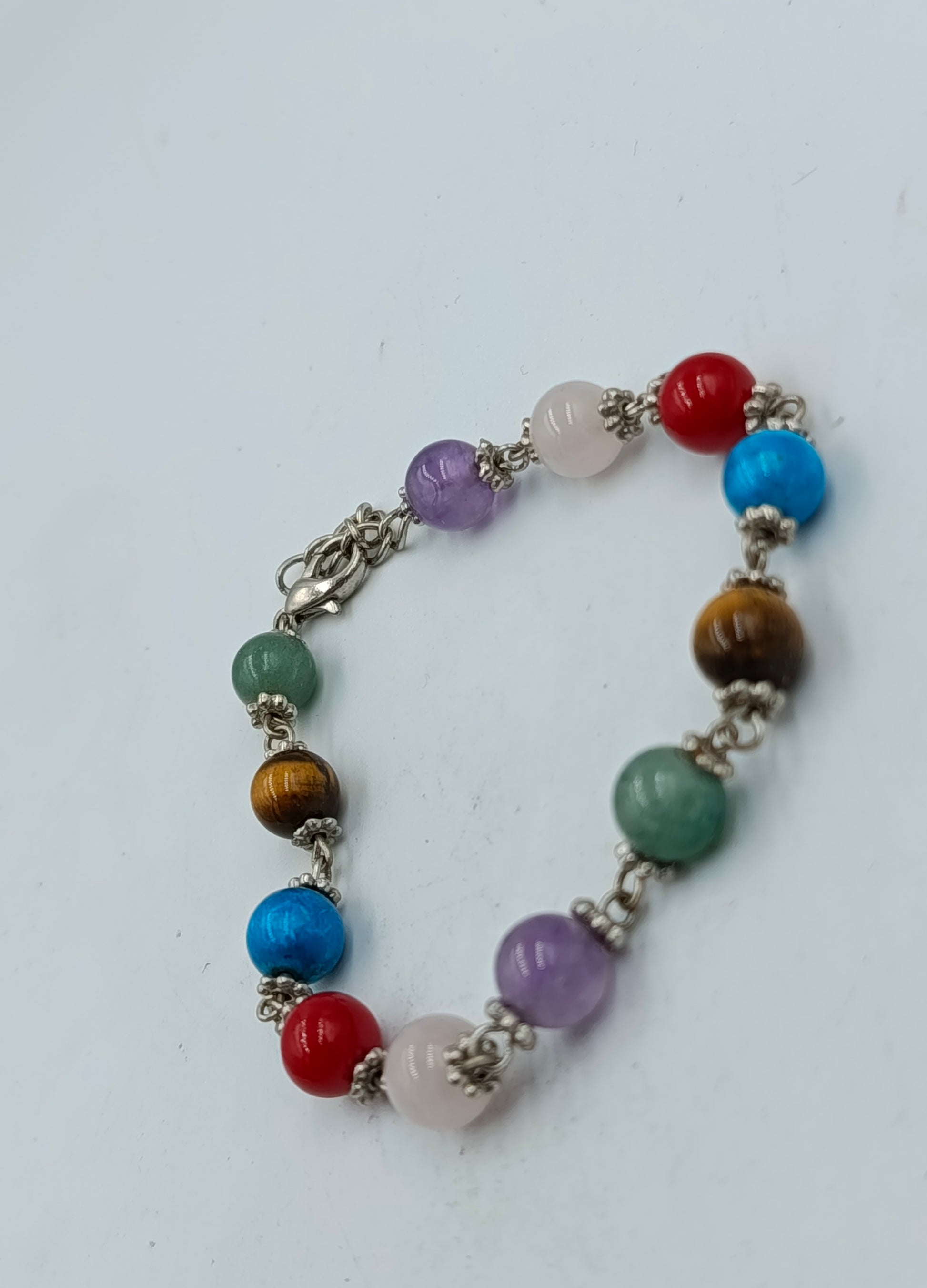 Armband mit bunten Edelsteinperlen und Silberverschluss