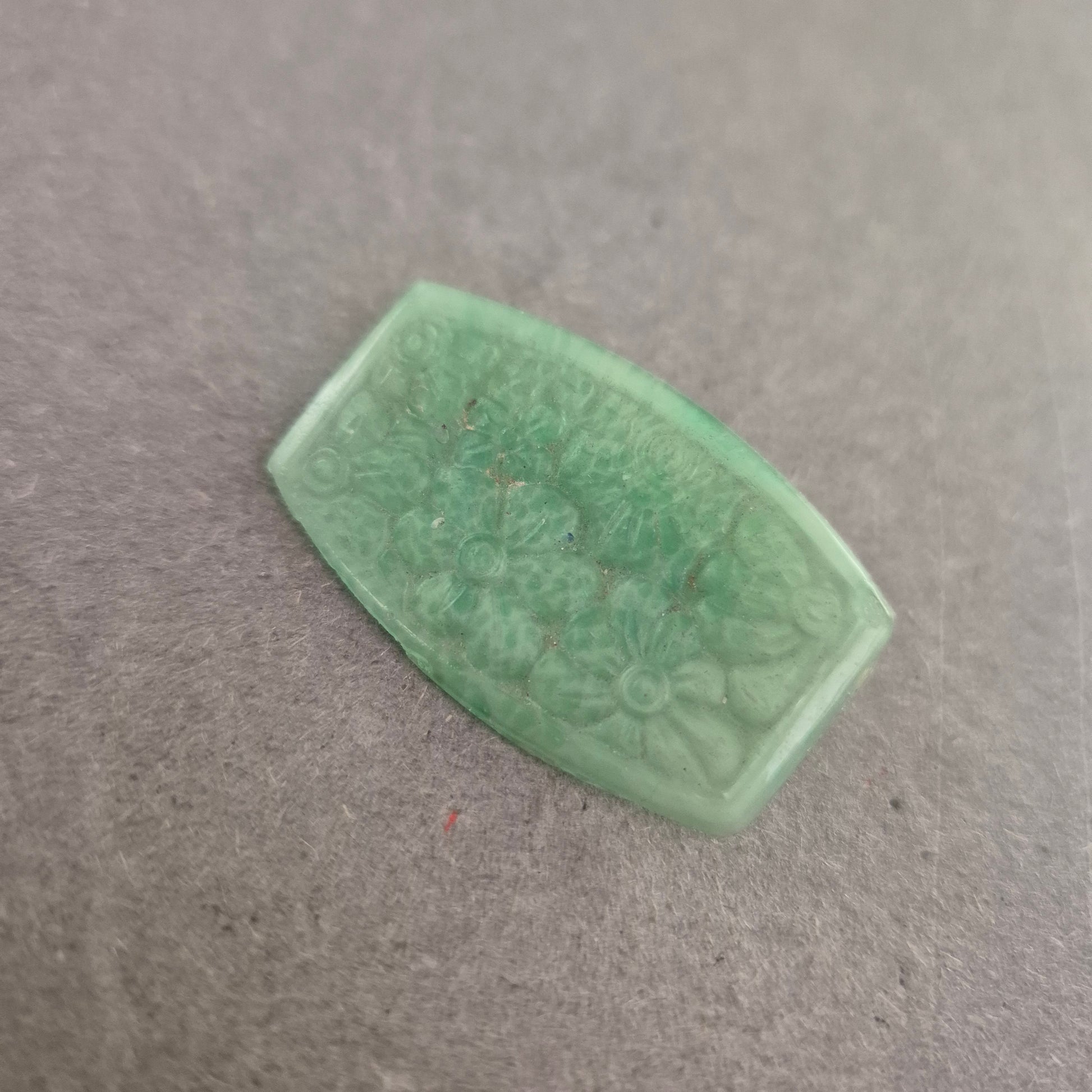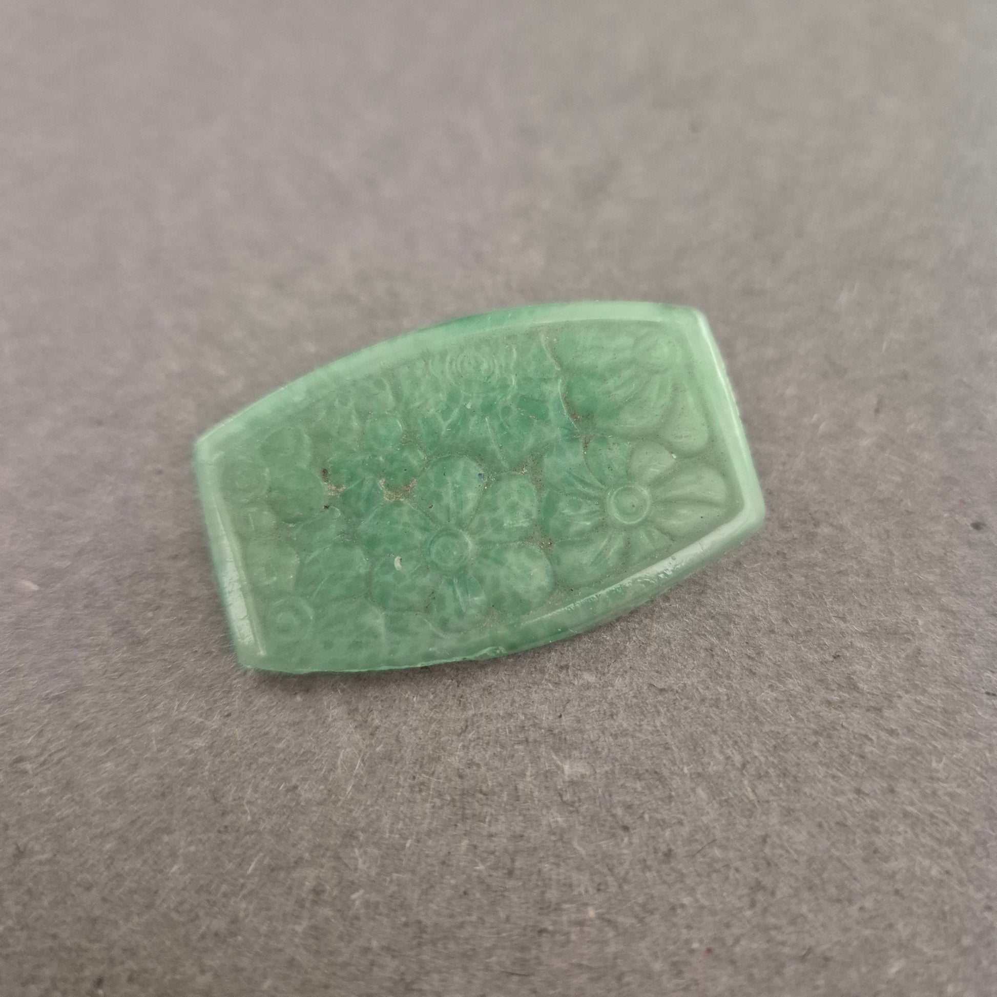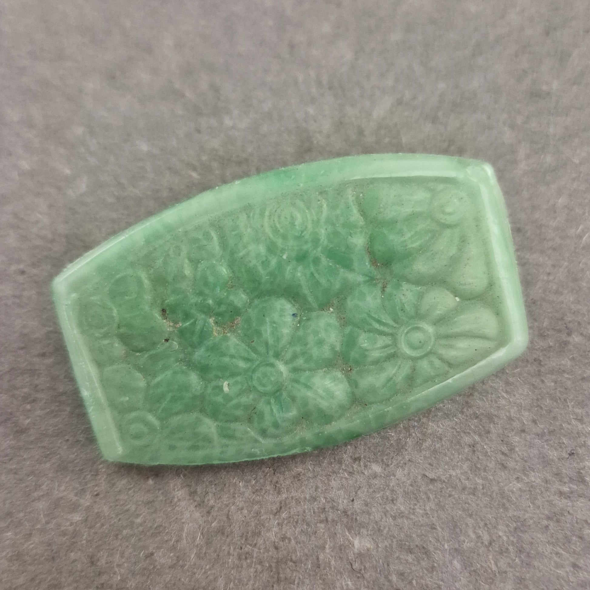 Art-Deco-Stil Brosche – Grüne Kunststoffplatte mit floralem Relief