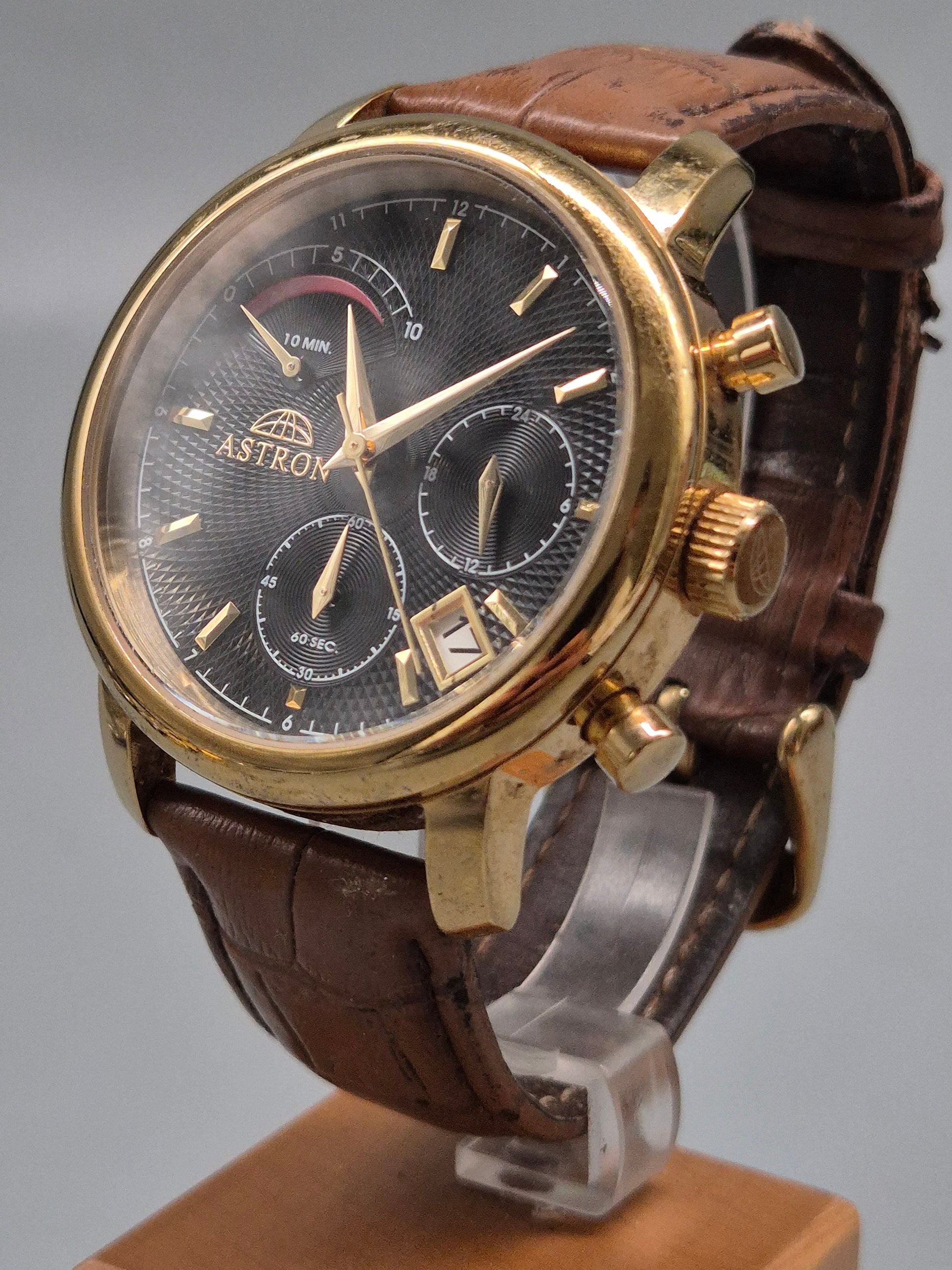 Astron Herren Uhr – Goldfarbene Quarzuhr mit Multifunktionsanzeige