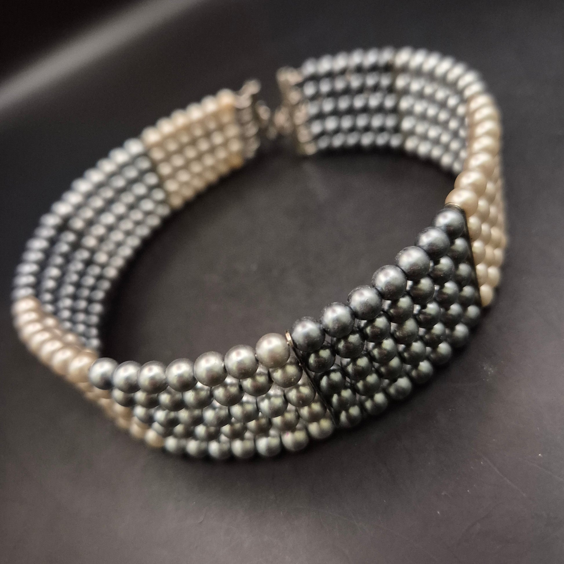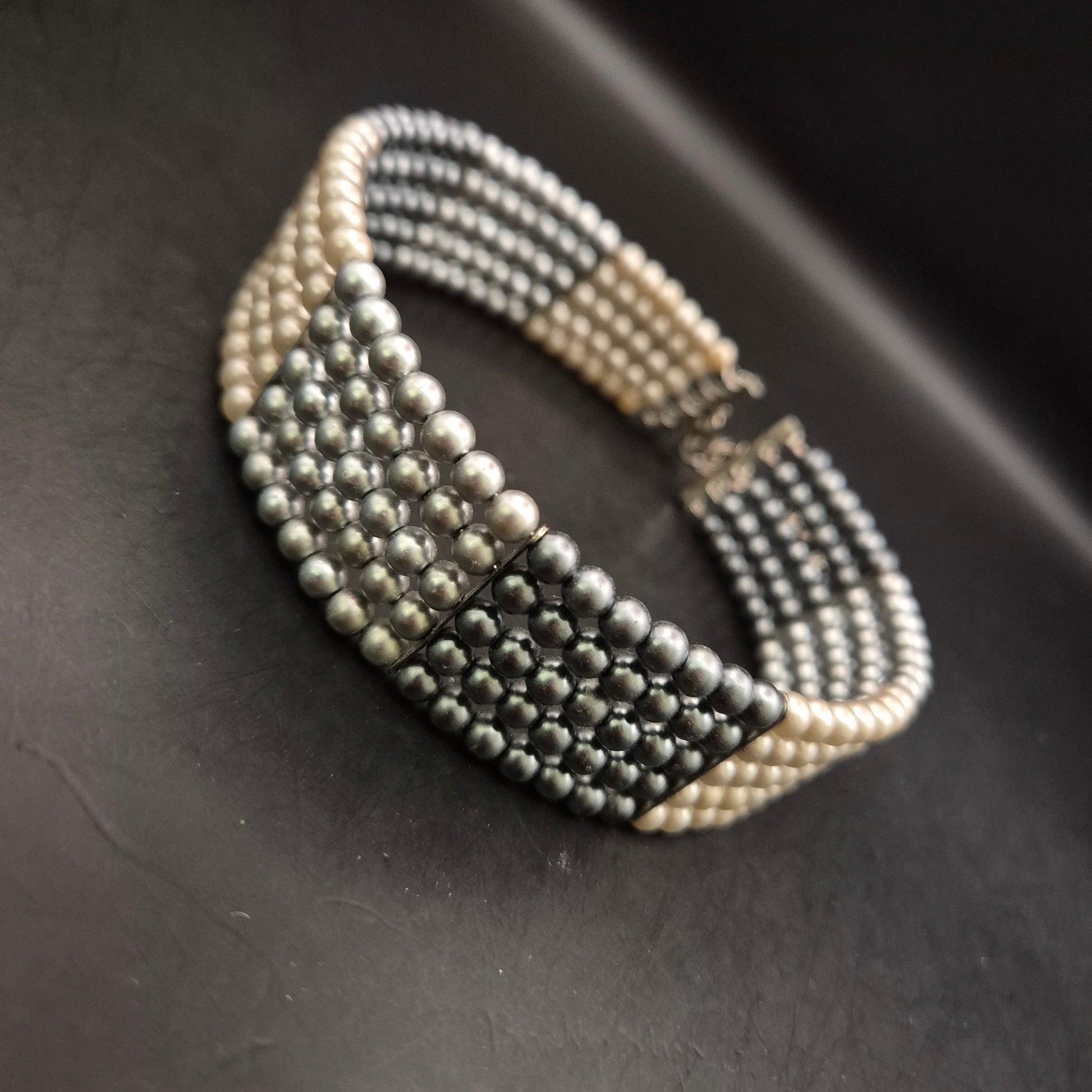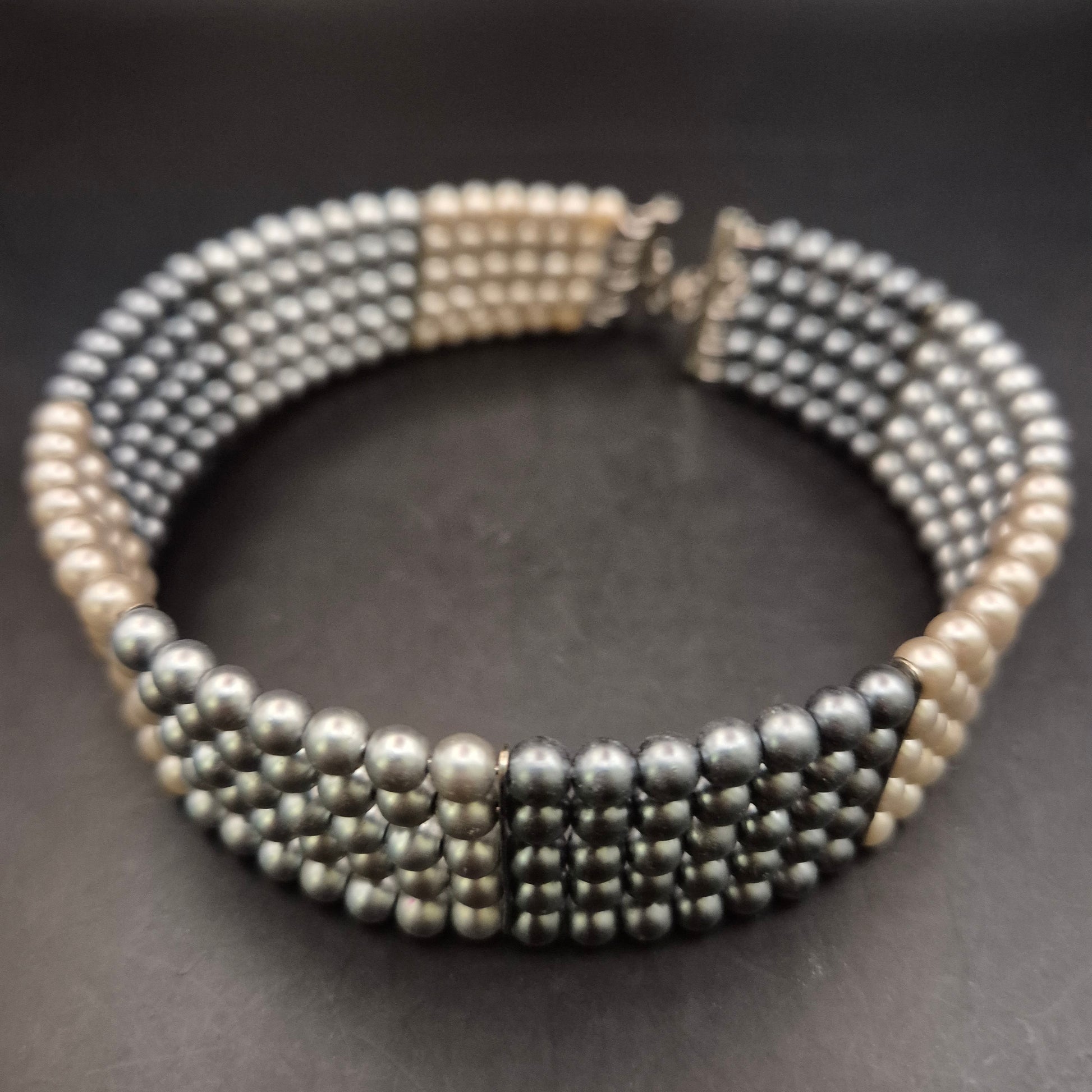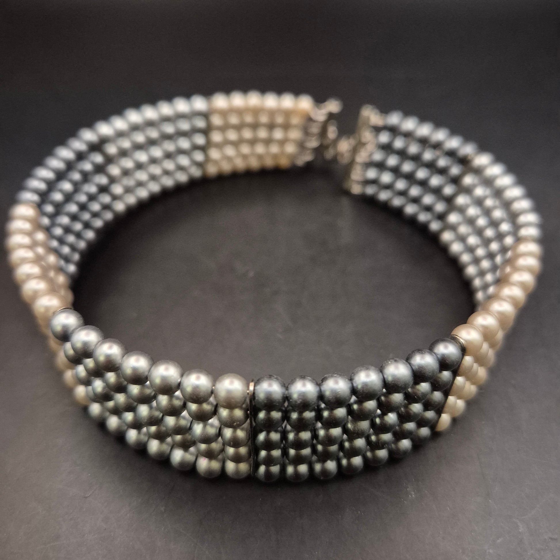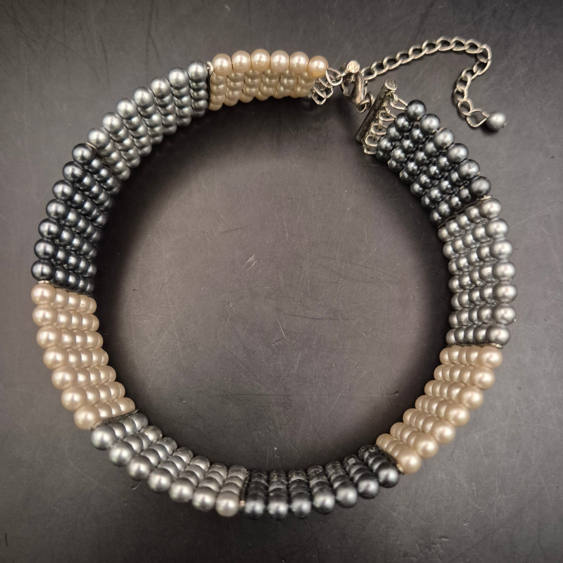 Auffällige Perlen Halskette in Schwarz-Weiß – Mehrreihiger Vintage-Stil