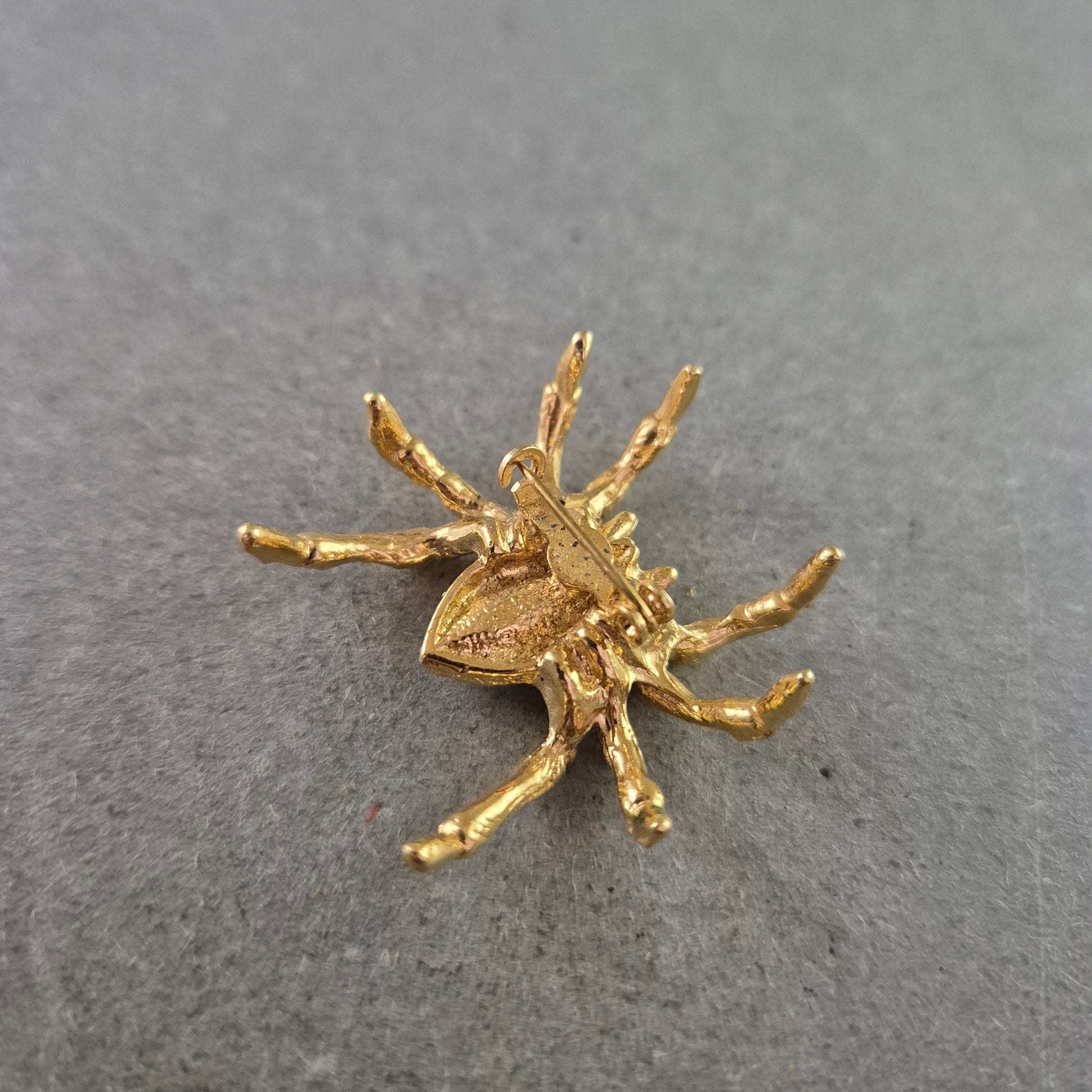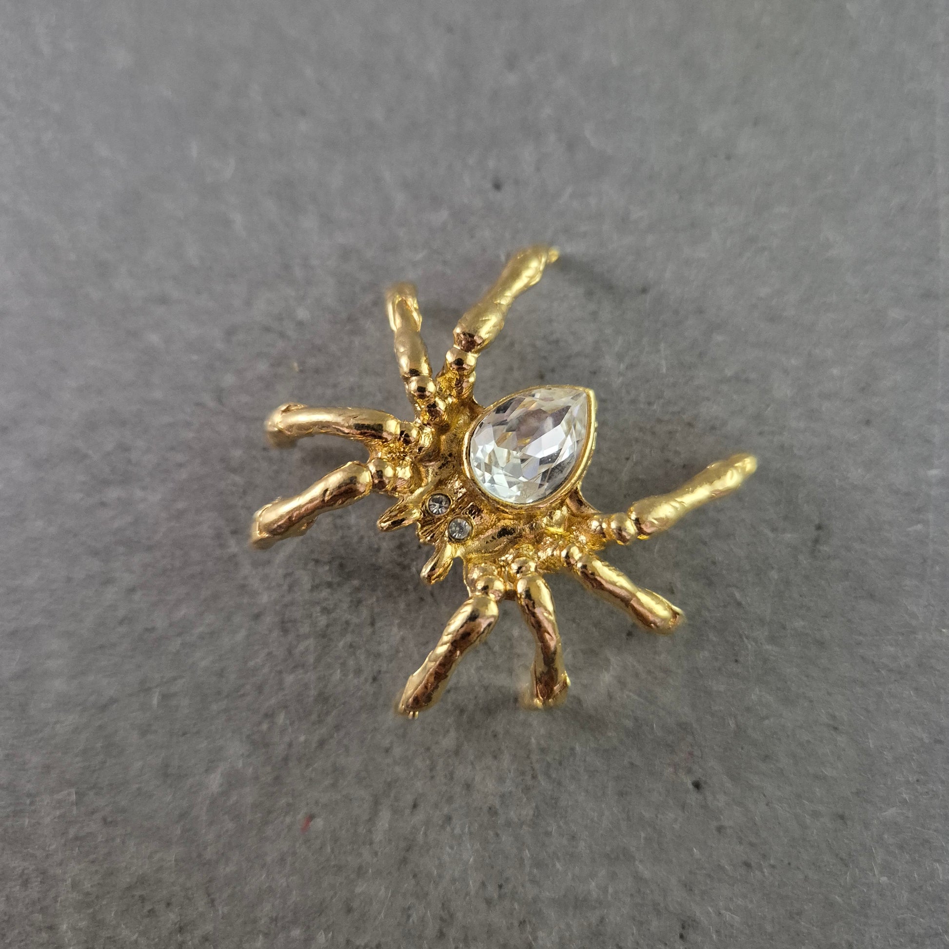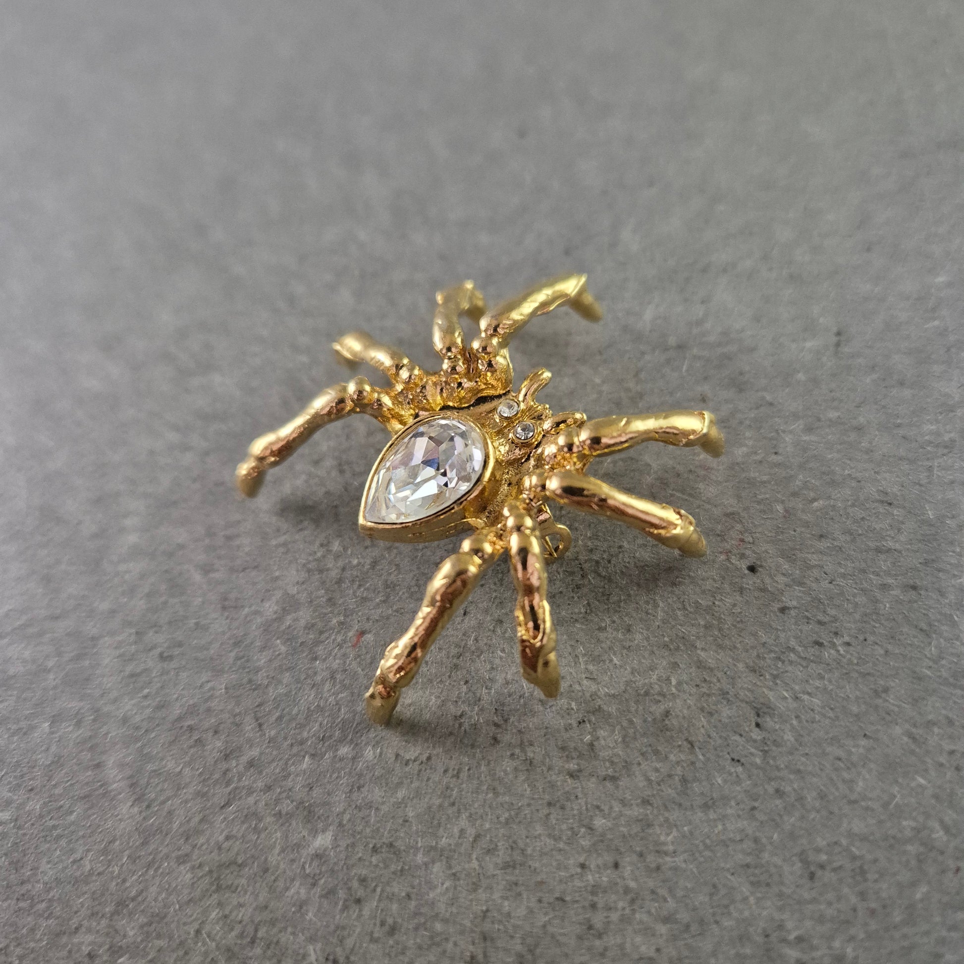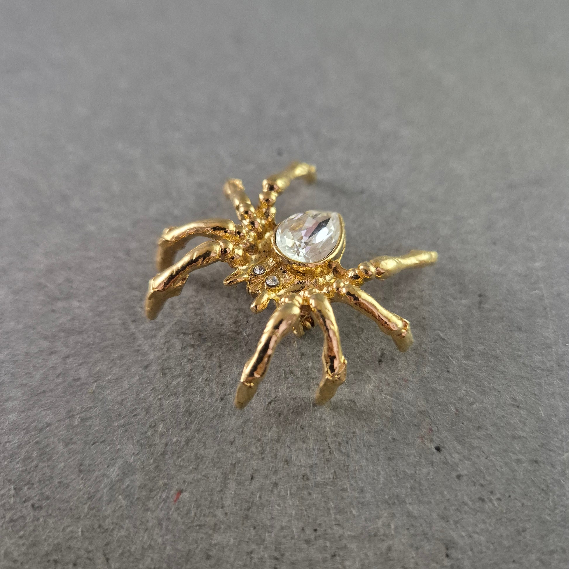 Auffällige Spinnen-Brosche in Goldoptik mit großem Strassstein