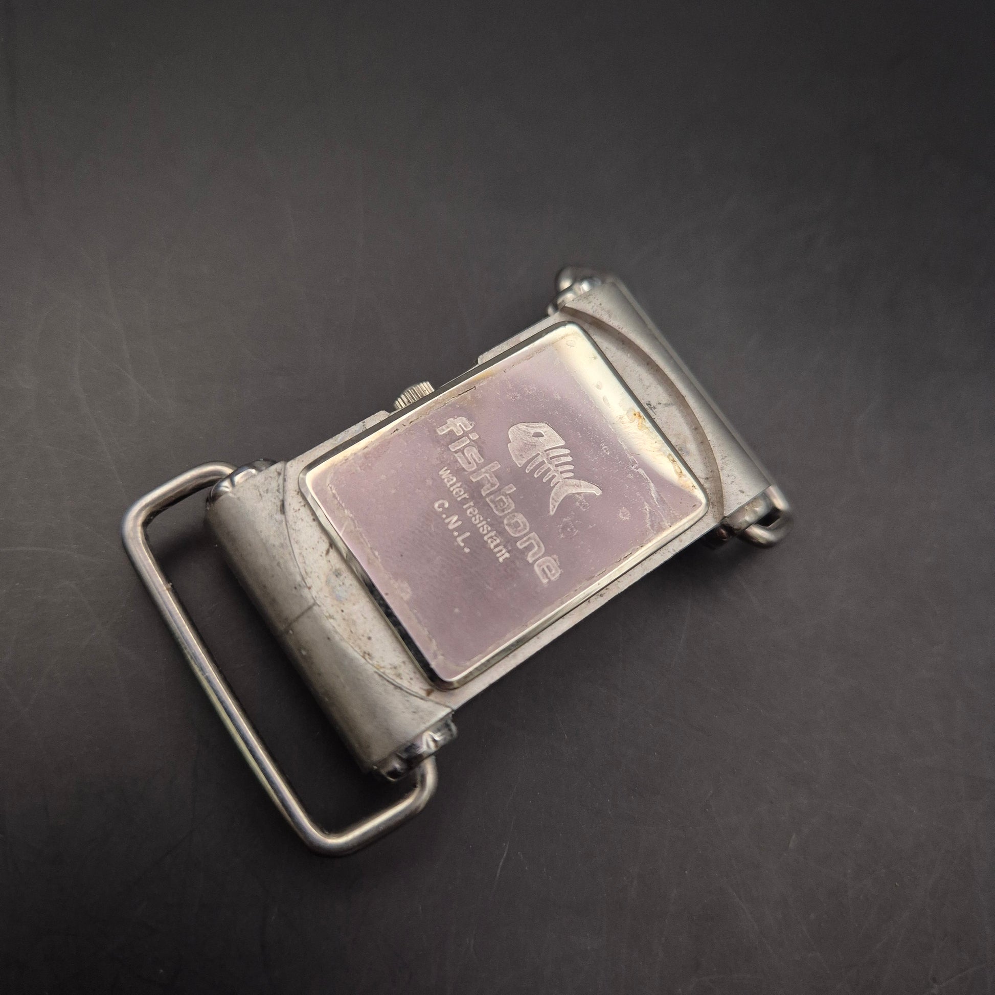 Diese markante Fishbone Herren Uhr besticht durch ihr ungewöhnliches, rechteckiges Design und das robuste Metallgehäuse. Das Zifferblatt in Silber mit dem „Fishbone“-Logo und minimalistischen Stundenmarkierungen verleiht der Uhr einen modernen und urbanen Charakter. Durch die auffällige Gestaltung mit eingefrästem Markenlogo und Fischgräten-Symbol wird sie zu einem echten Hingucker.