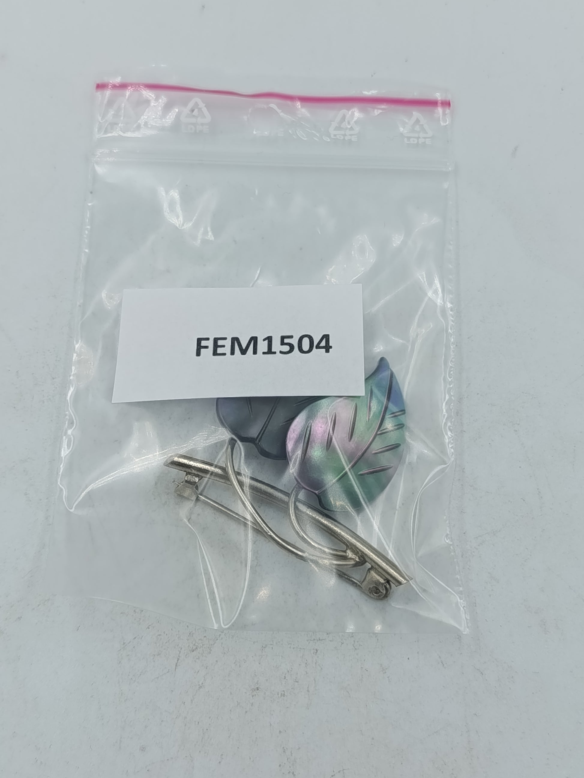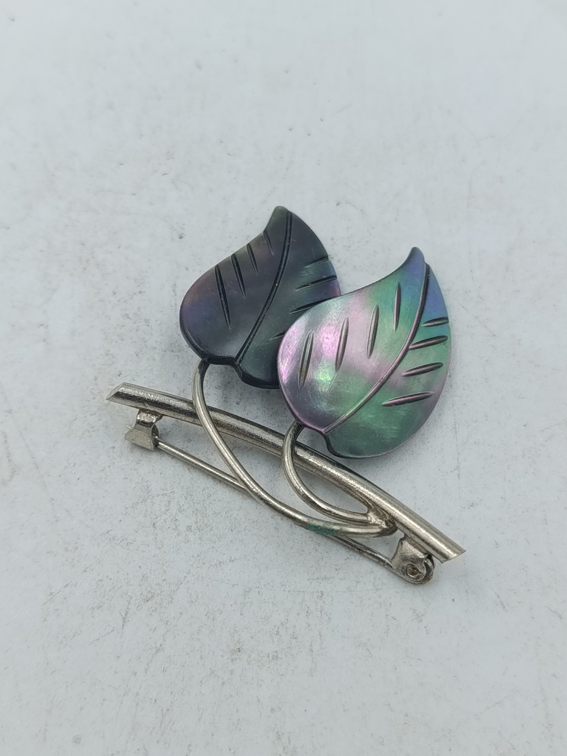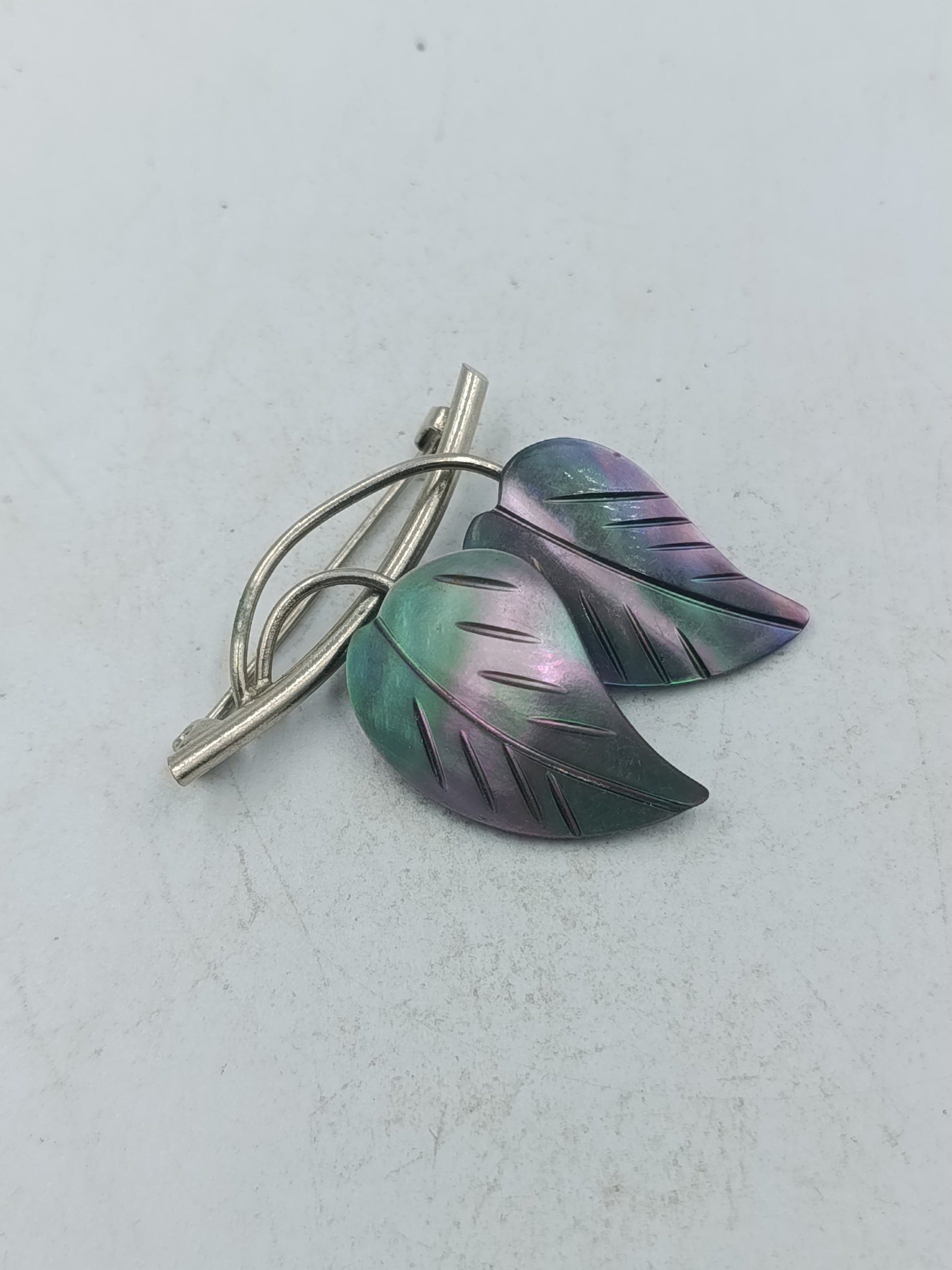 Blatt Brosche in schimmernden Grün und Violetttönen